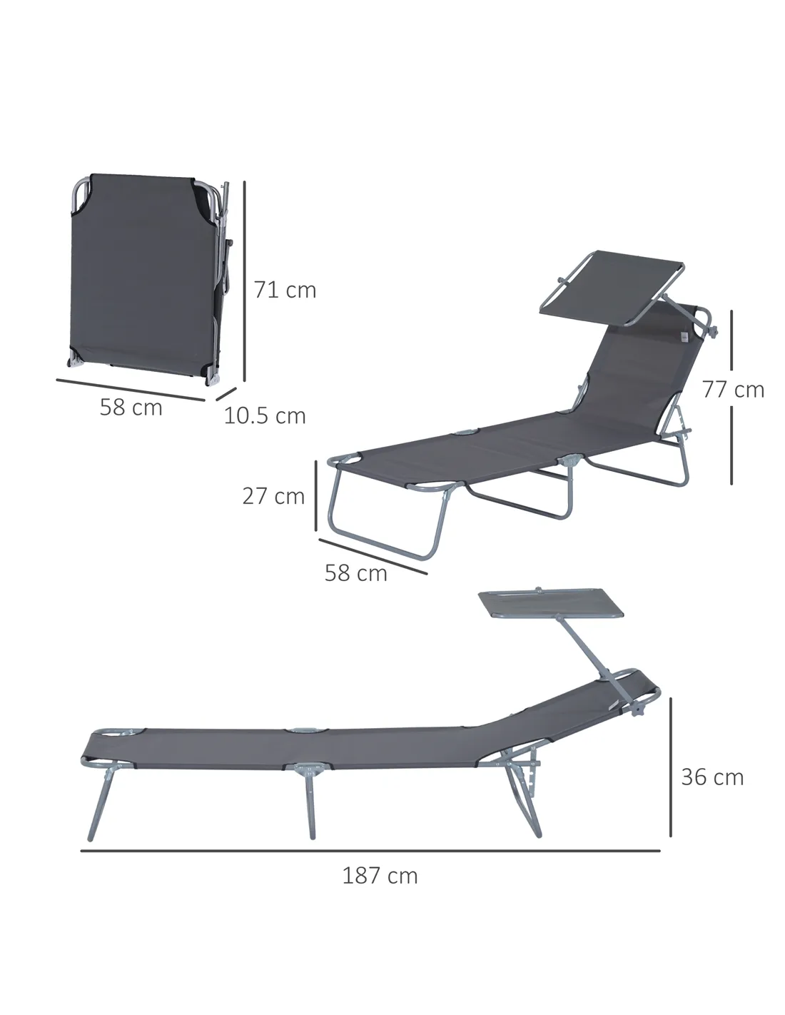 This reclining sun lounger set from Outsunny not only keeps you comfortable, but keeps your head safely protected. It's fitted with removable canopy to shield against the sun and light rain - reducing the risk of heatstroke and getting wet. The back is adjustable to four different levels, to lie back to an angle you like. And when done, simply fold the metal frame and store away. Enjoy your time outside. Get out, get comfy, get Outsunny.