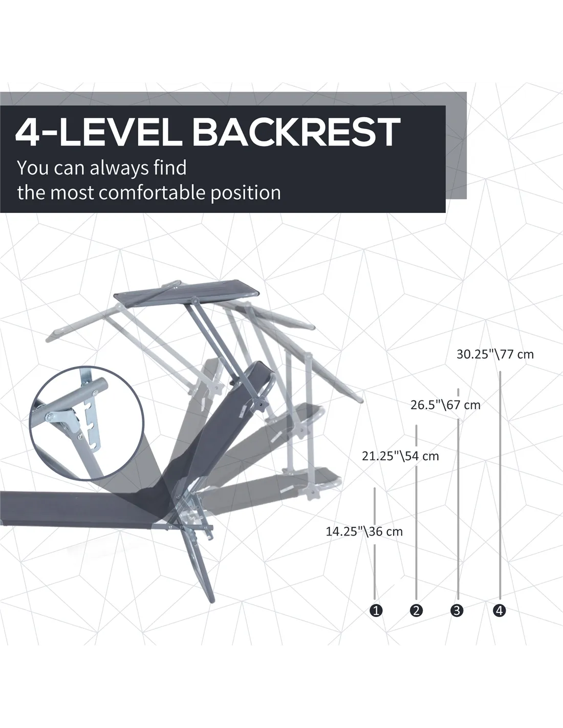 - Perfect addition to your garden or patio, offering adjustable reclining positions for sunbathing or reading outdoors.