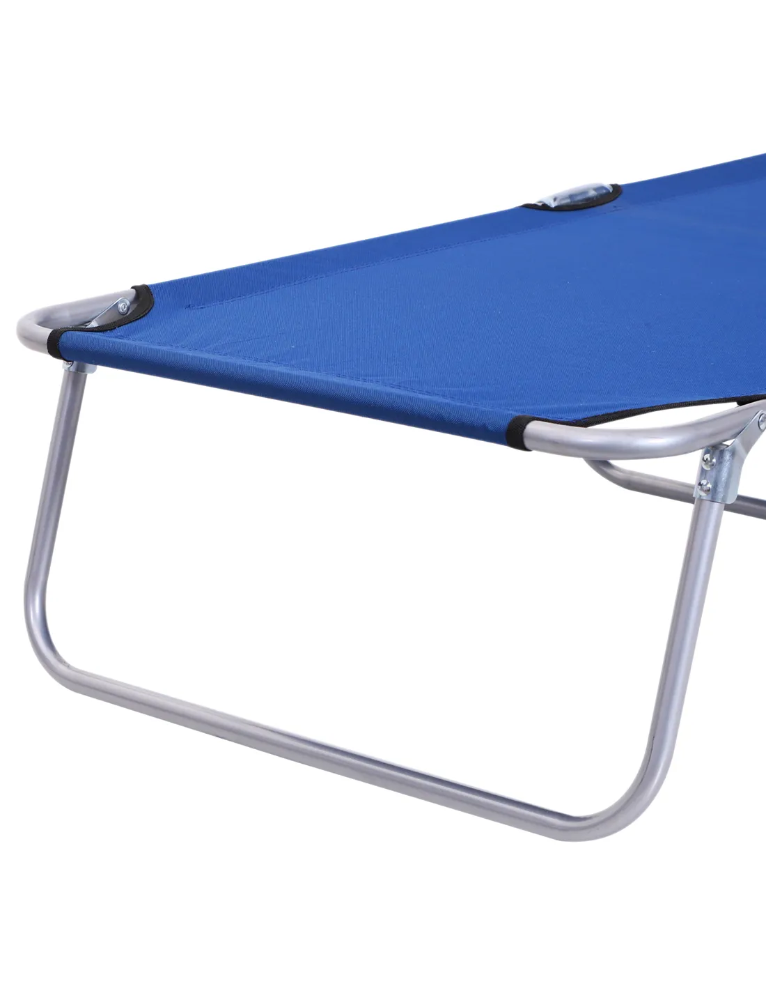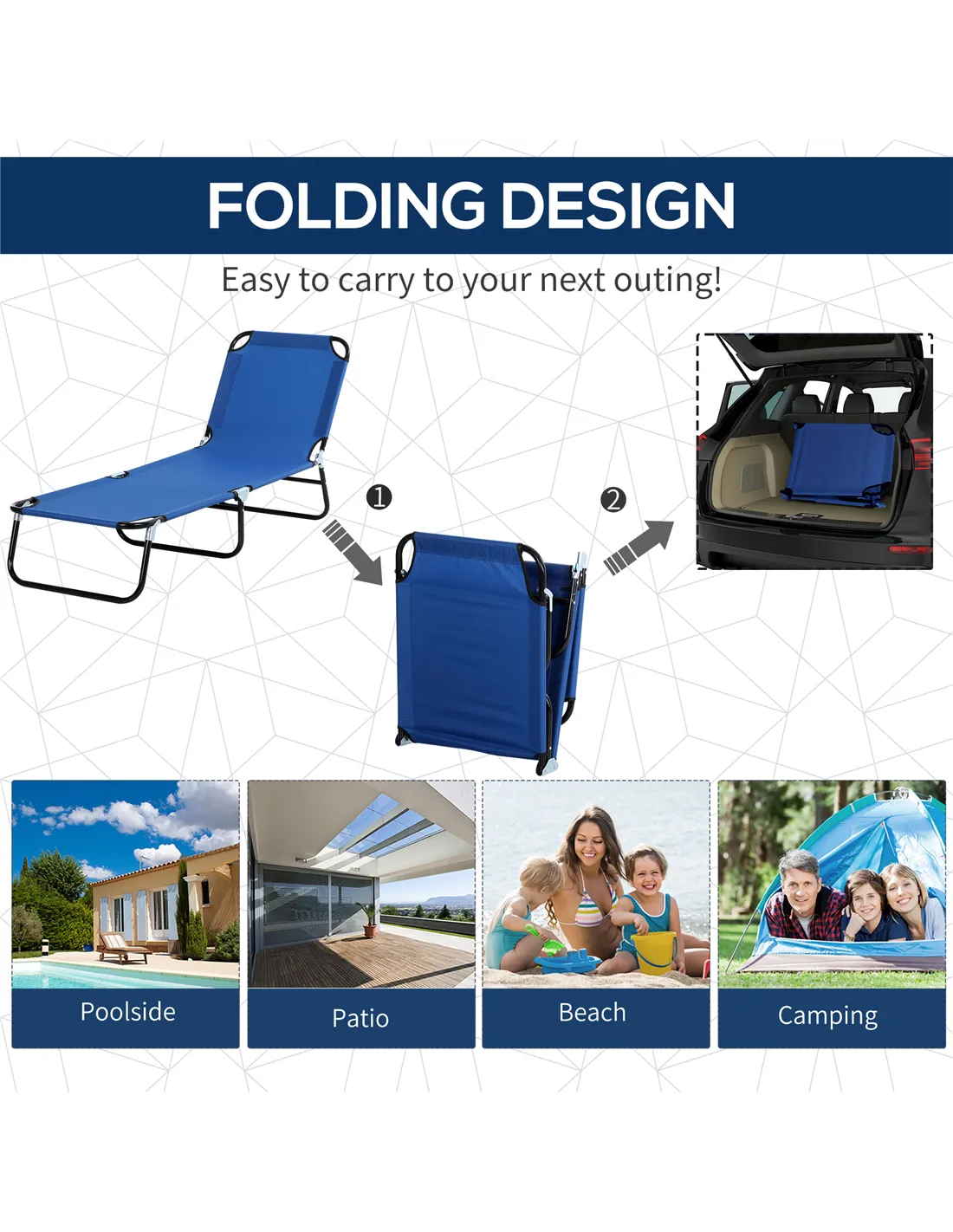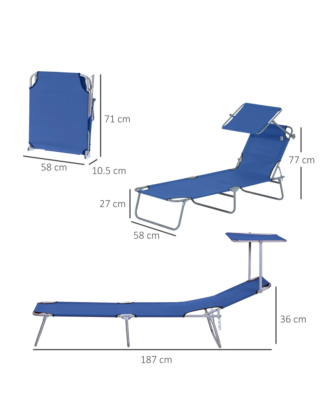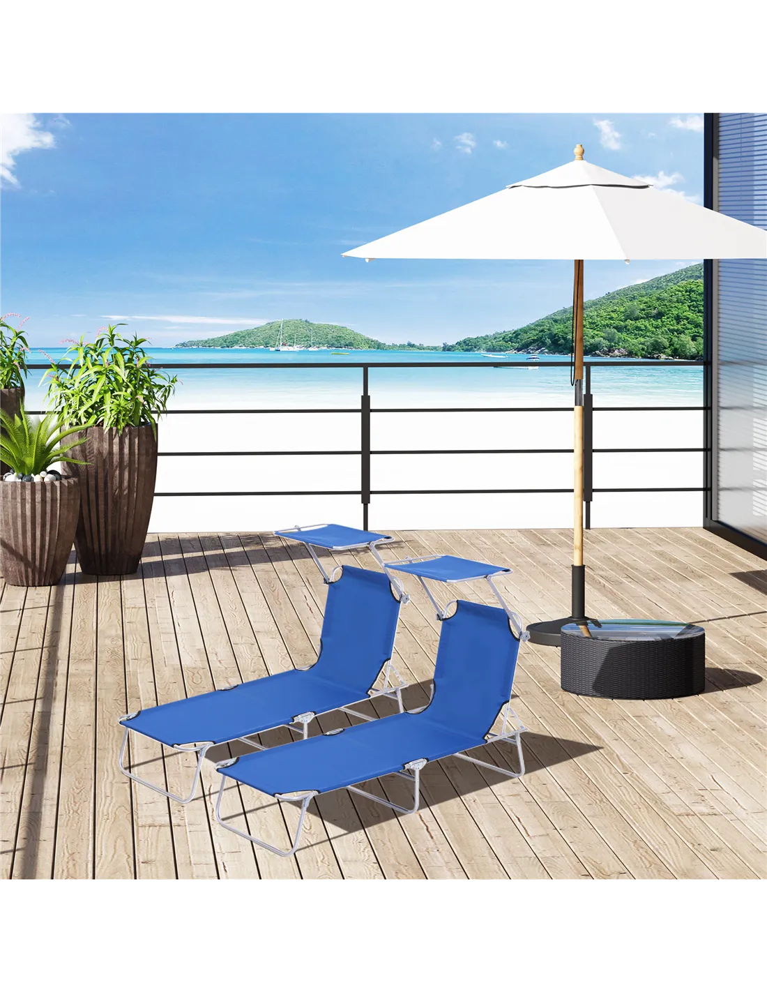 Outsunny 2 Pieces Outdoor Foldable Sun Lounger, 4 Level Adjustable Backrest Reclining Sun Lounger Chair with Angle Adjust Sun Shade Awning for Beach, Garden, Patio, Blue