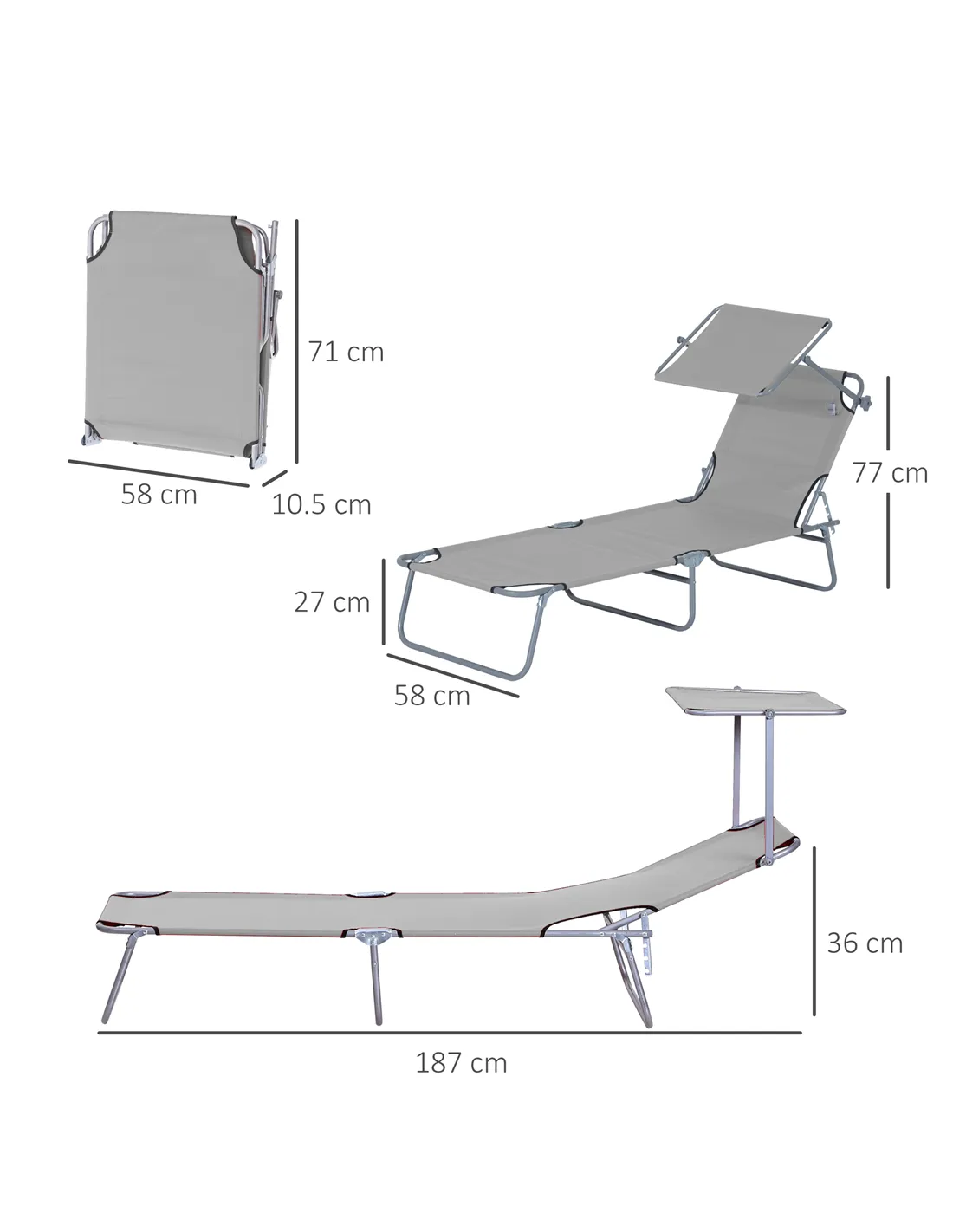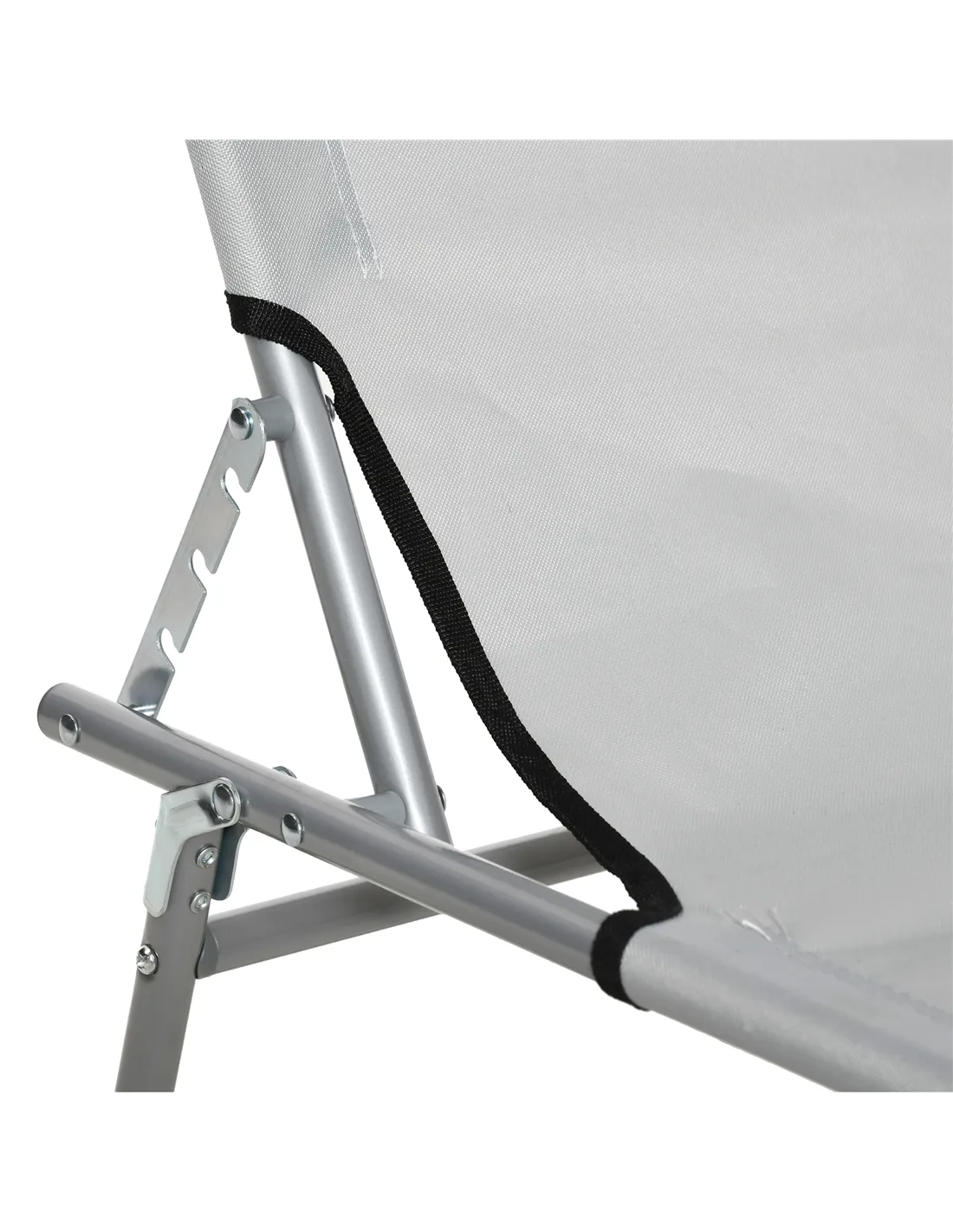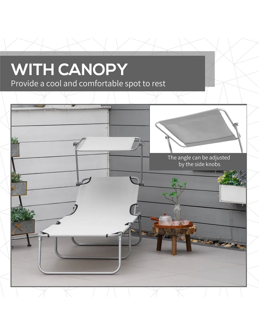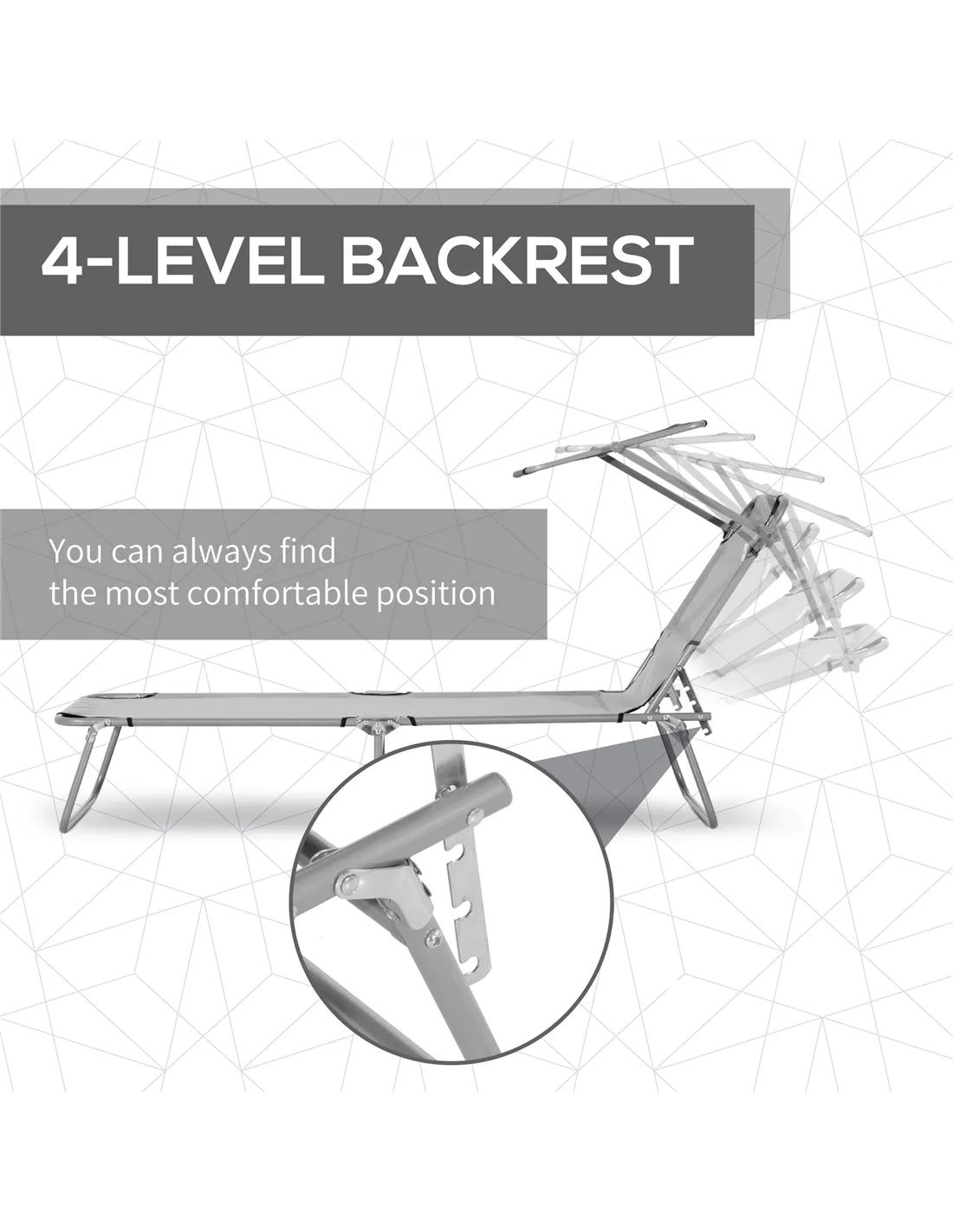 Outsunny 2 Pieces Outdoor Foldable Sun Lounger, 4 Level Adjustable Backrest Reclining Sun Lounger Chair with Angle Adjust Sun Shade Awning for Beach, Garden, Patio, Light Grey