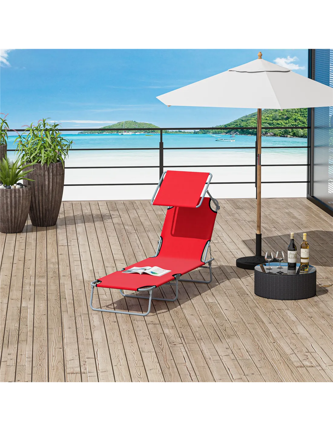 Outsunny Folding Sun Lounger, Lounge Chairs Reclining Sleeping Bed with Adjustable Sun Shade Awning for Beach, Patio