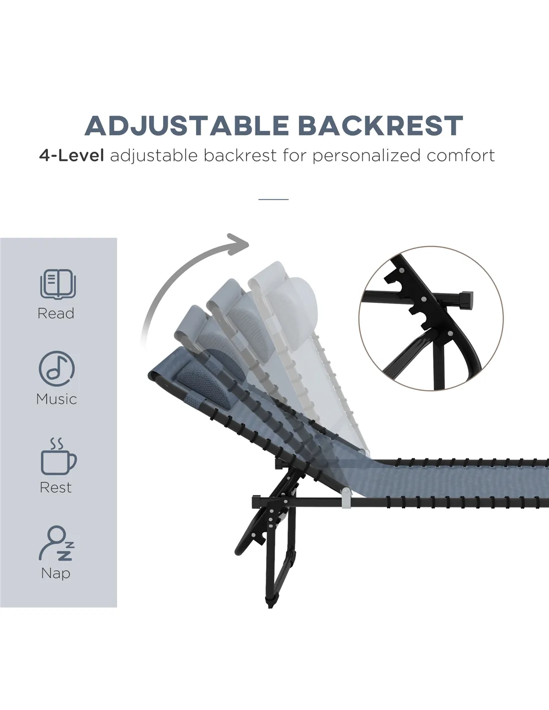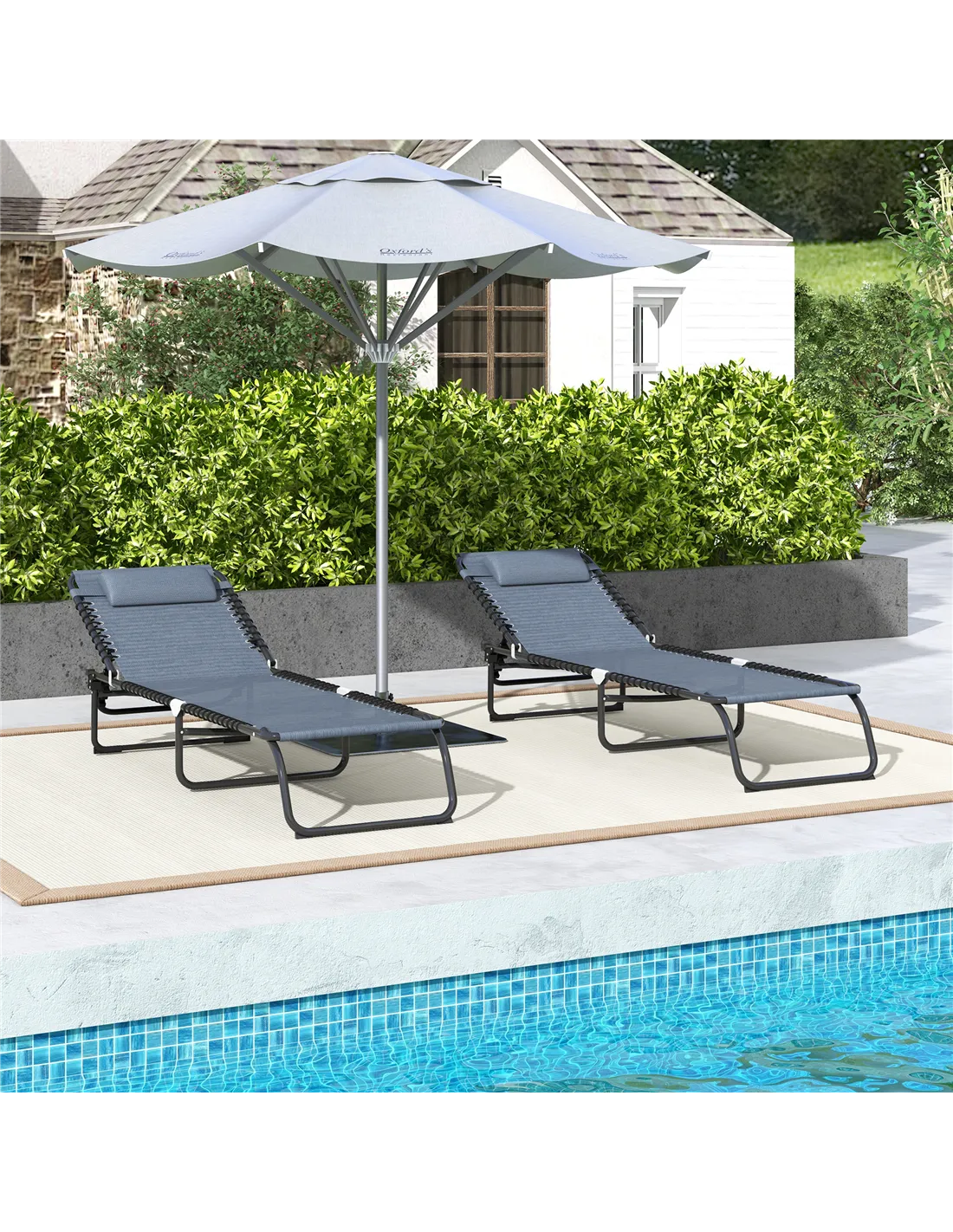 Outsunny Set of Two Folding Sun Loungers, with Four-Position Backs - Grey