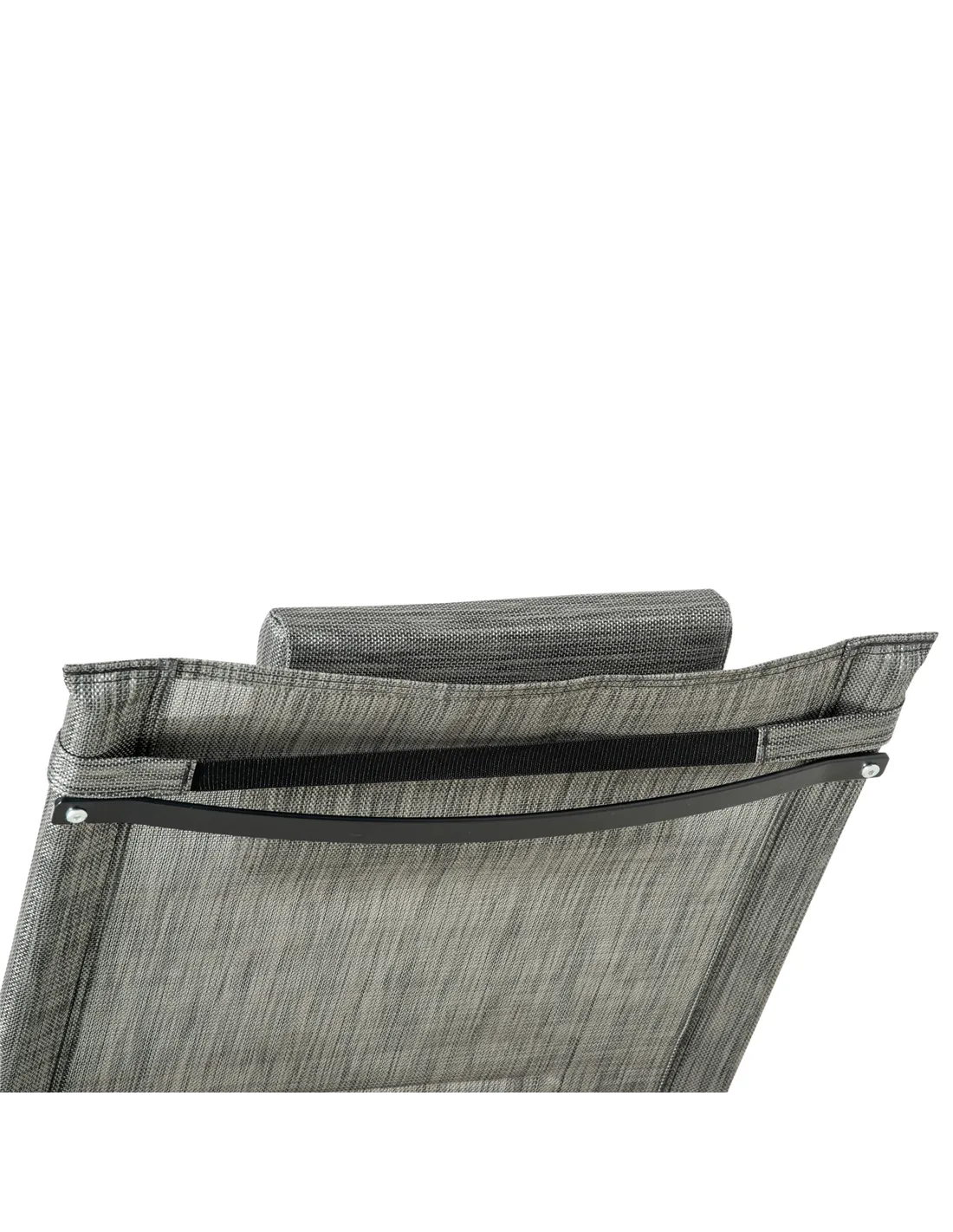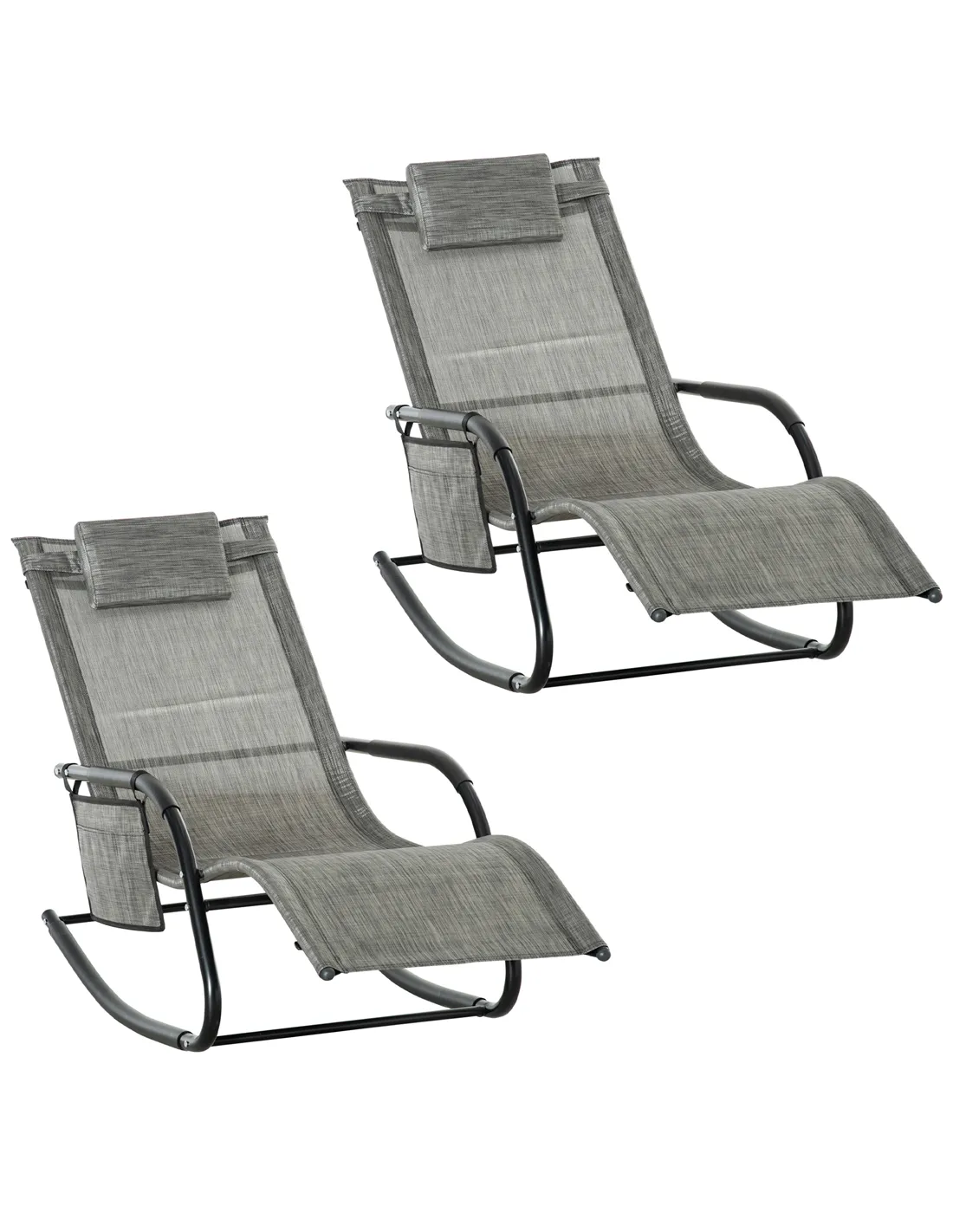 Outsunny 2PCs Outdoor Garden Rocking Chair, Patio Sun Lounger Rocker Chair with Breathable Mesh Fabric, Removable Headrest Pillow, Armrest, Side Storage Bag, Dark Grey