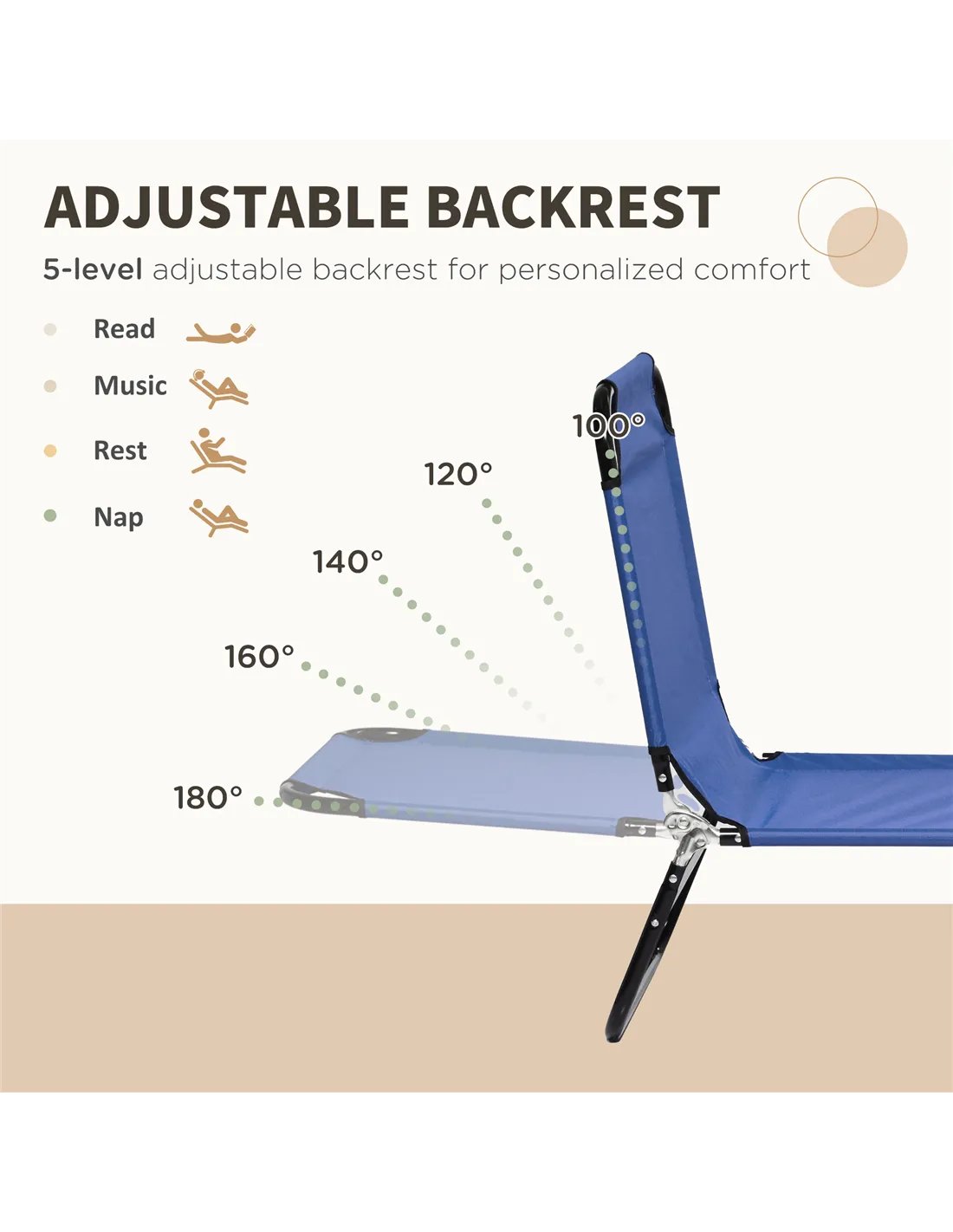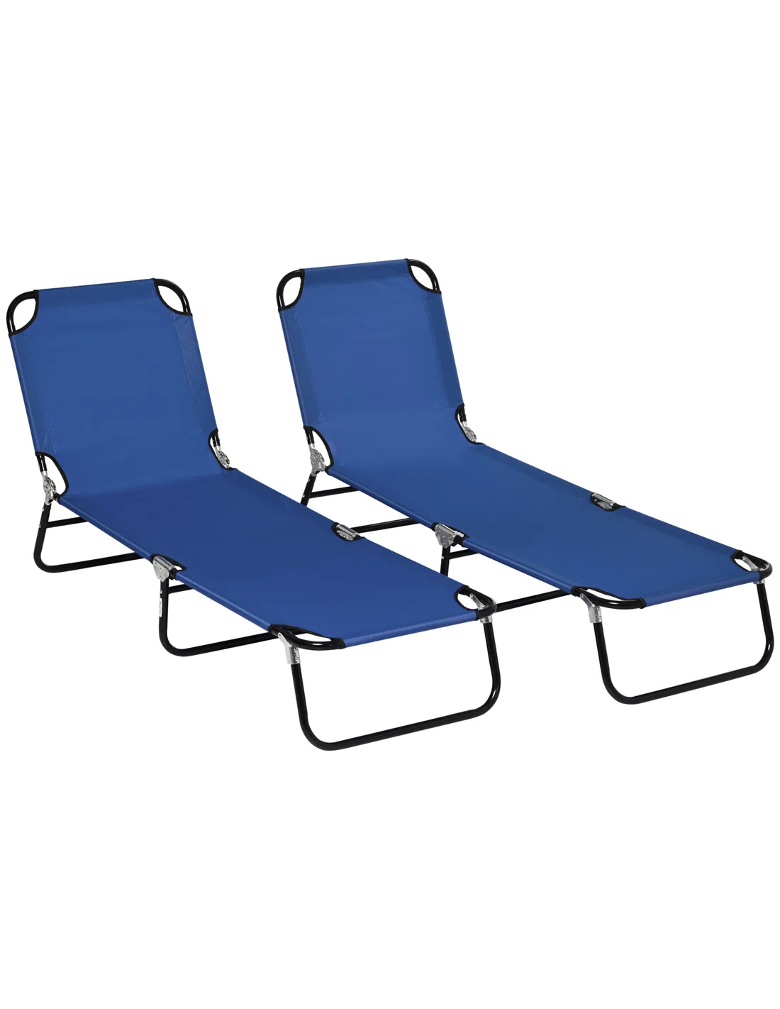 Outsunny Set of Two Metal Frame Folding Sun Loungers - Blue