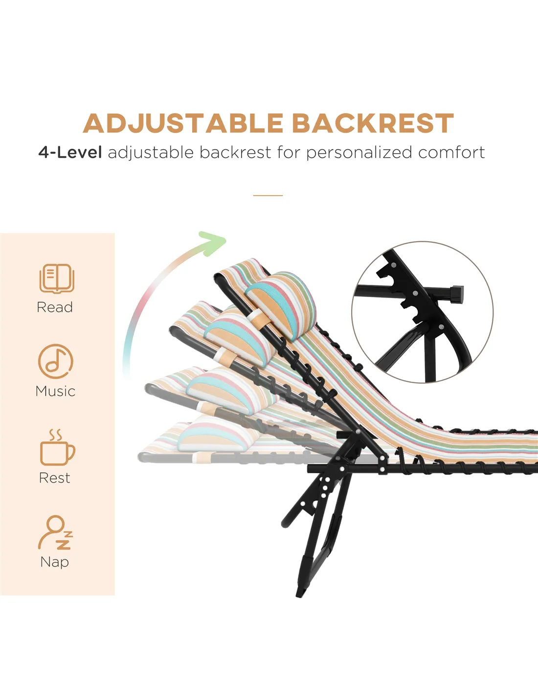 Outsunny Set of Two Folding Sun Loungers, with Four-Position Backs - Multicoloured