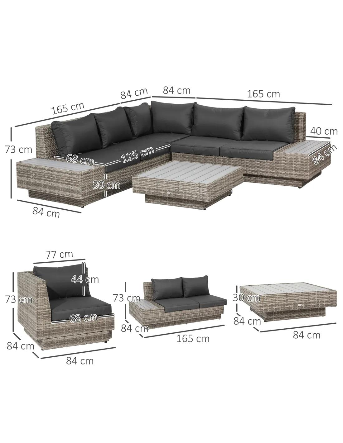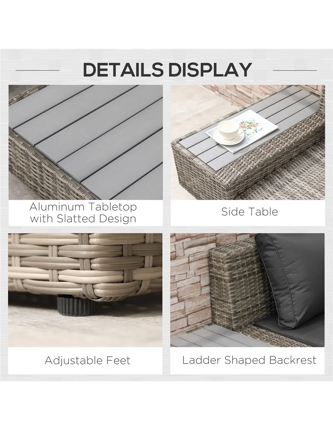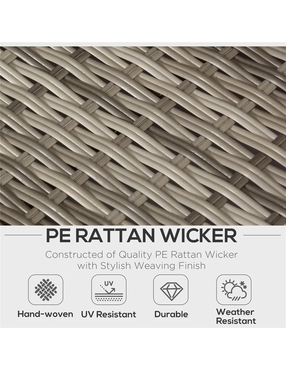 The Outsunny 4-piece rattan garden set is perfect for enhancing your outdoor living space with both style and comfort. Arrange the two loveseats, corner sofa, and coffee table to suit your garden, patio, or conservatory layout, creating a cosy corner for relaxing or entertaining guests. The light grey wicker weave complements a variety of outdoor décors, making it ideal for al fresco dining, casual gatherings, or simply unwinding with a book. Thanks to its modular design, you can easily reconfigure the seating to accommodate larger groups or intimate settings. The thick cushions and armrests provide added comfort, encouraging long, leisurely afternoons outdoors.