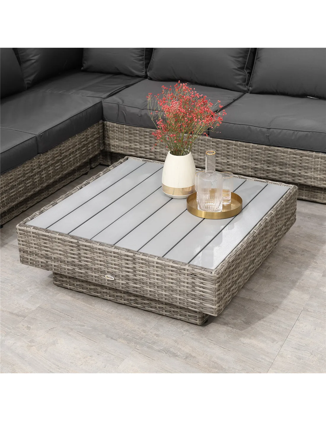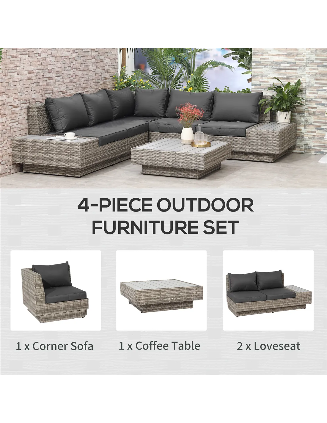 Outsunny 4 PCs Rattan Garden Furniture Outdoor Sectional Corner Sofa and Coffee Table Set Conservatory Wicker Weave Furniture with Armrest and Cushions - Light Grey