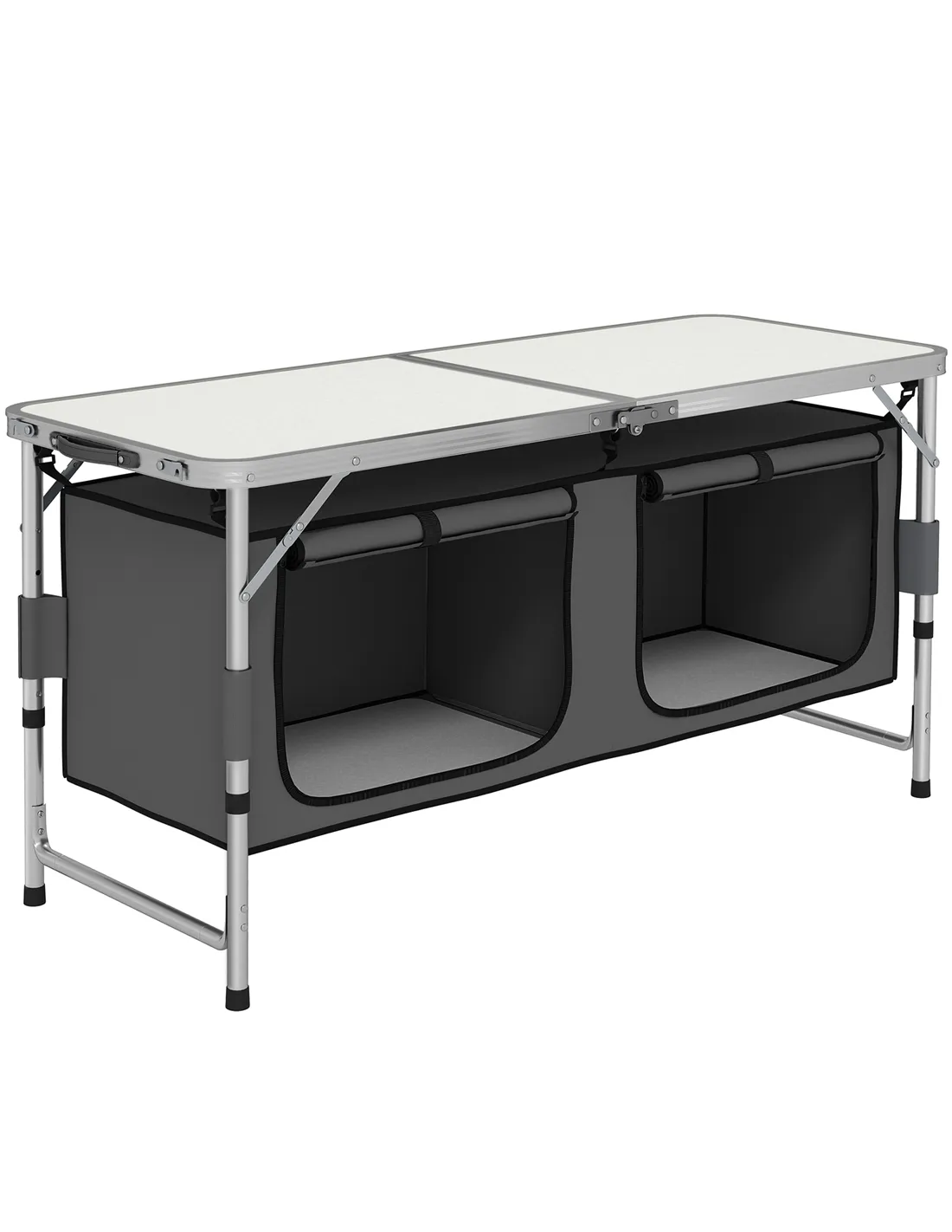 Outsunny 4ft Folding Camping Cupboard Kitchen, Height Adjustable Aluminium Camping Table with Storage, Lightweight Picnic Table for Outdoor Garden BBQ Party