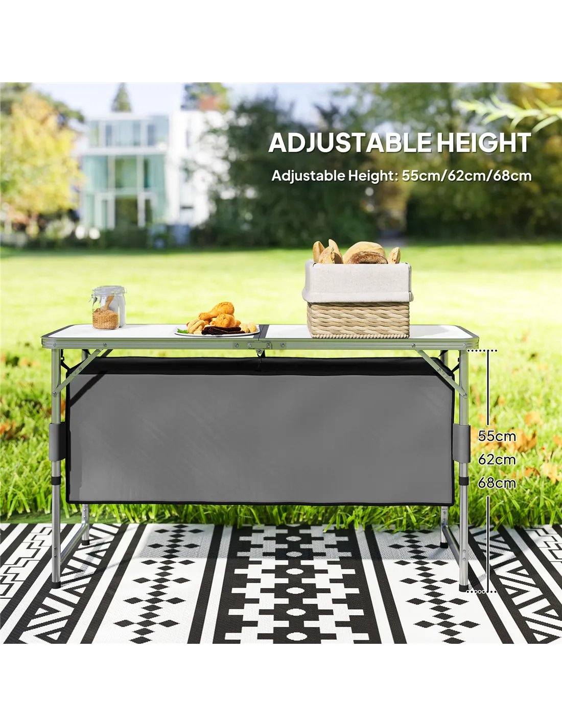 - Perfect for picnics in parks or countryside trips, offering a lightweight yet sturdy table with adjustable height to suit various seating arrangements.
