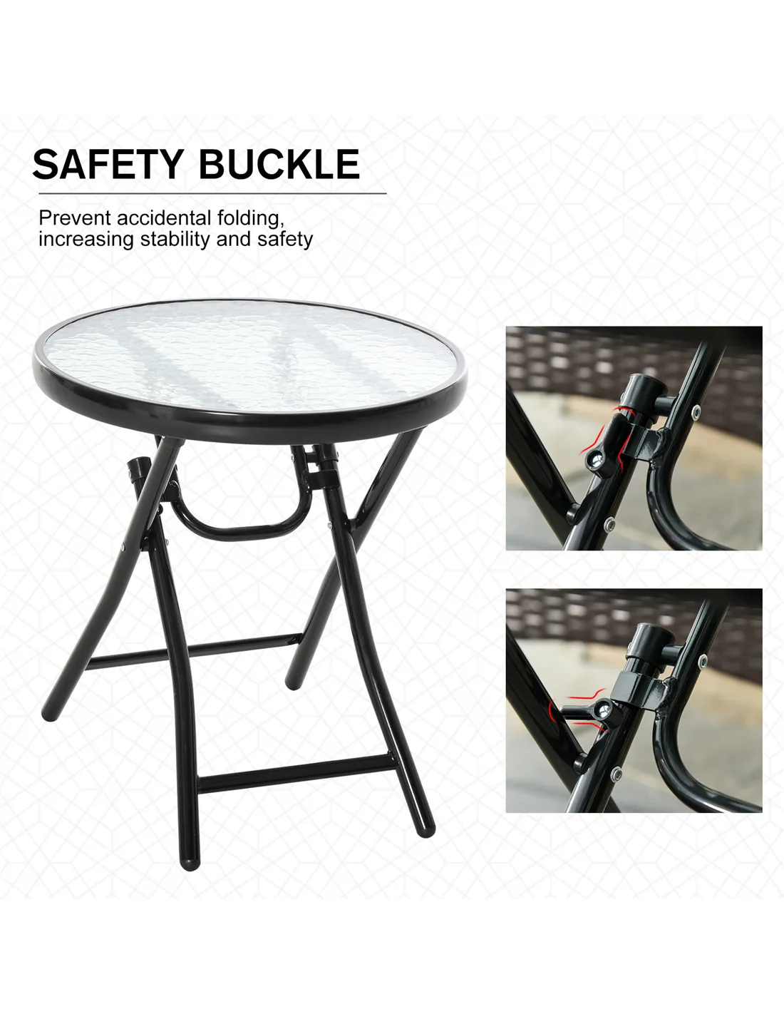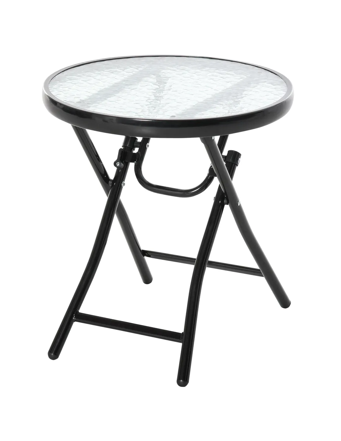 A must for every garden and outdoor space: this Outsunny small table. A sturdy metal frame, with a safety buckle to keep it stable. It's fitted with a ripple glass top for a sturdy surface place, with a light touch of elegance. Use as a side table, a balcony table, coffee table - the choices are endless!