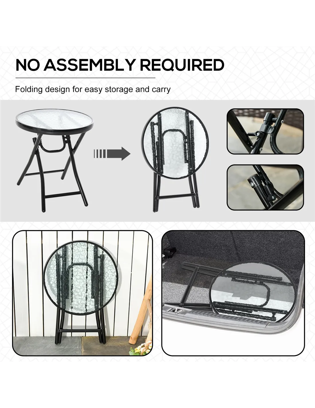 Based on reviews from UK customers, the Outsunny foldable garden table is praised for its robust metal frame and the unique rippled glass tabletop that adds a subtle elegance to any setting. Users appreciate the safety buckle feature, which ensures stability during use, and the ease of folding for storage or transport. Many highlight its versatility, noting how well it fits both outdoor and indoor environments. The no-assembly design is frequently mentioned as a significant convenience, making it ready to use straight from the box.