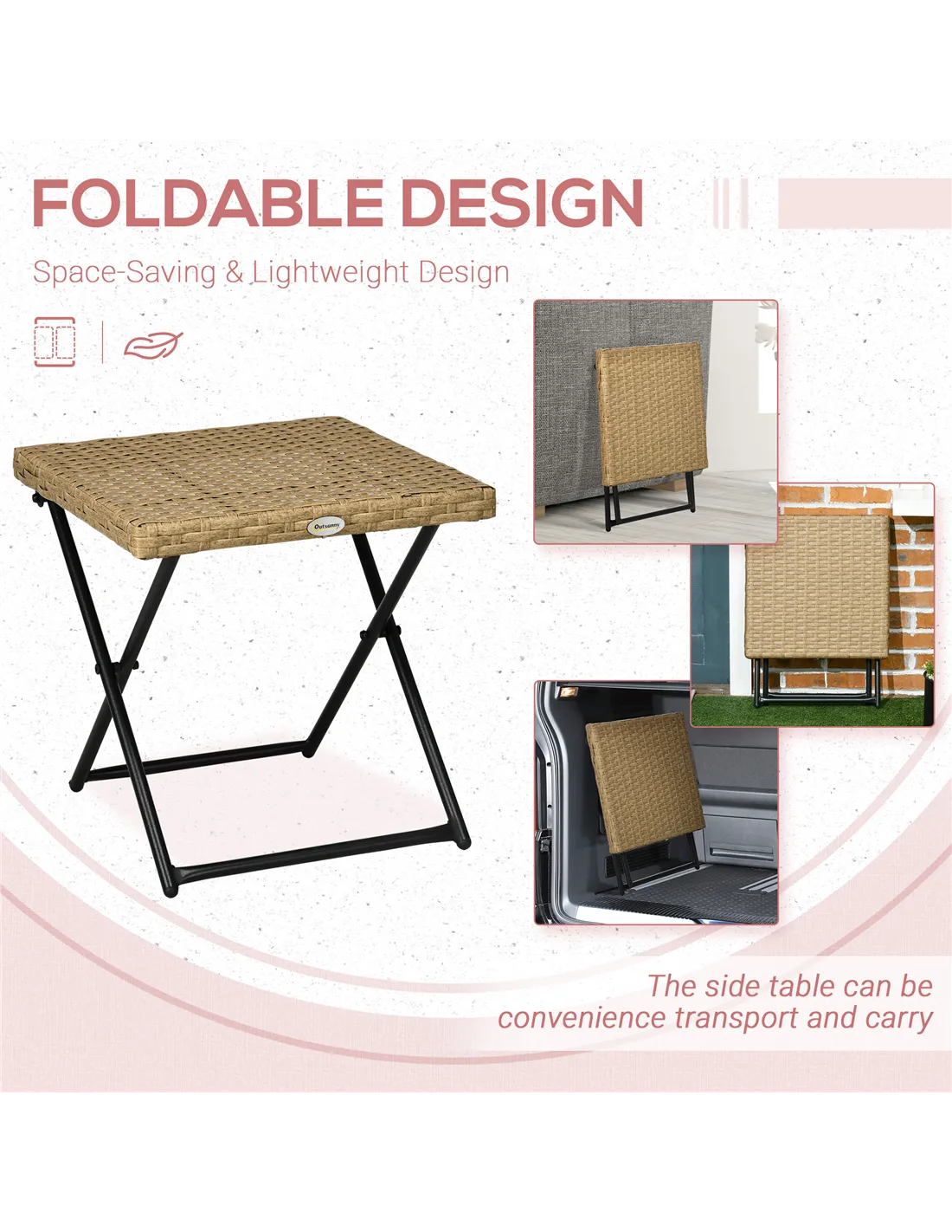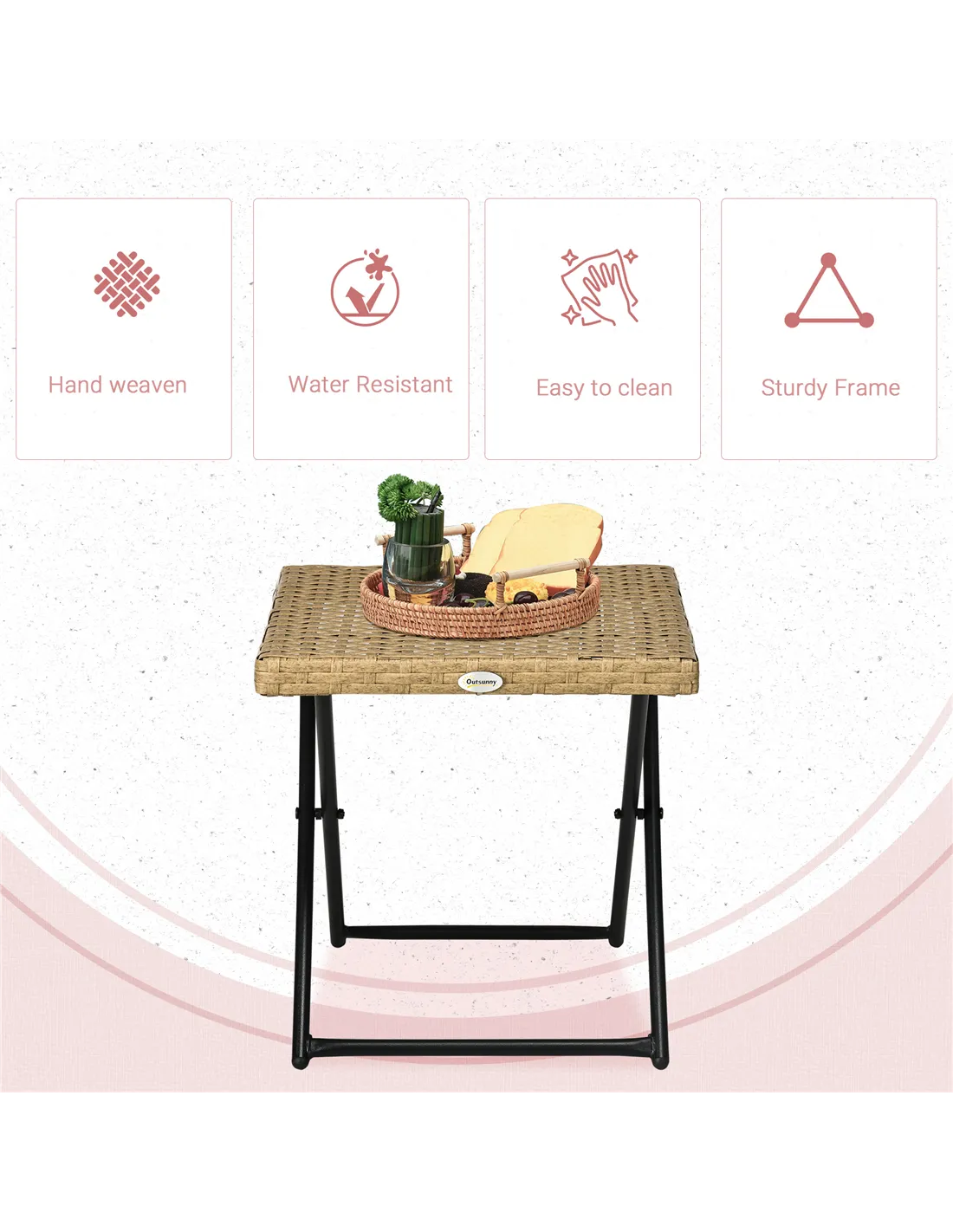 Outsunny Garden Small Folding Square Rattan Coffee Table Bistro Balcony Outdoor Wicker Weave Side Table 40Hx40Lx40Wcm, Natural