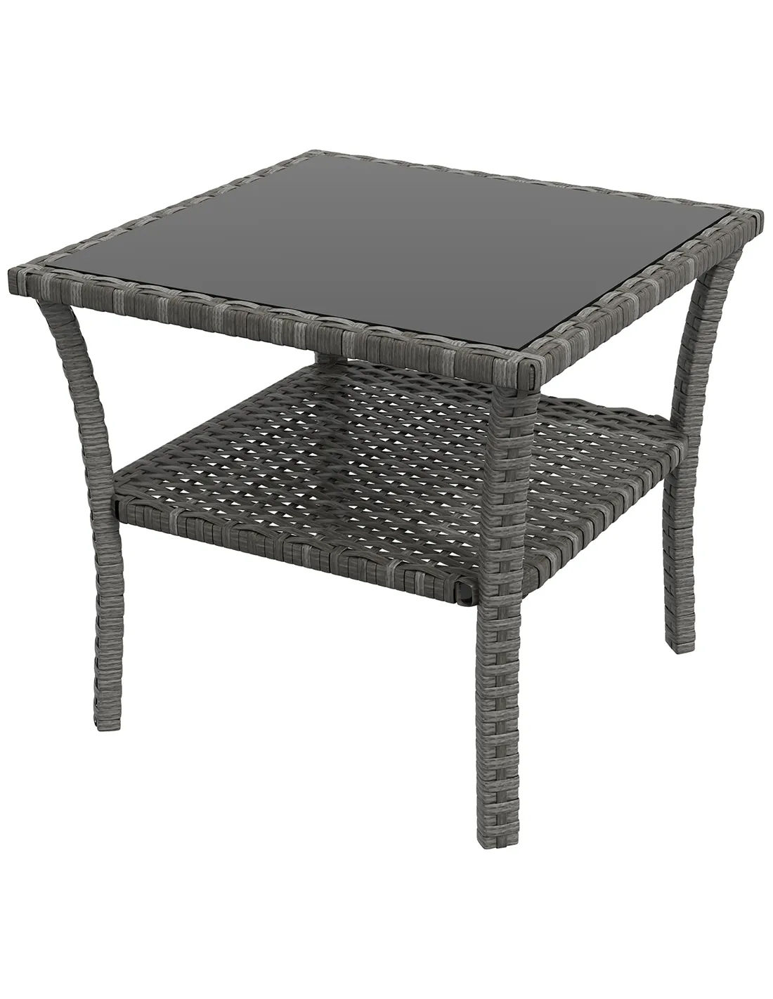 Outsunny Two-tier PE Rattan Square Coffee Table - Grey