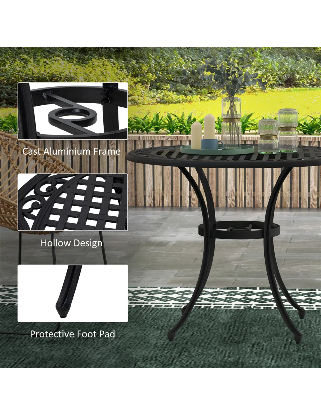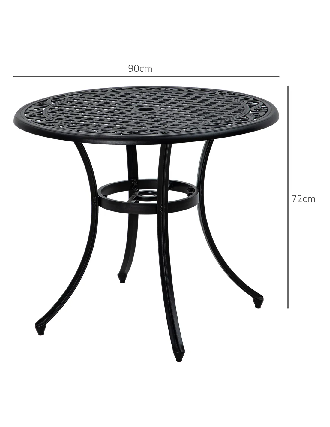 Outsunny Φ90cm Four-Seated Round Aluminium Garden Table, with Parasol Hole