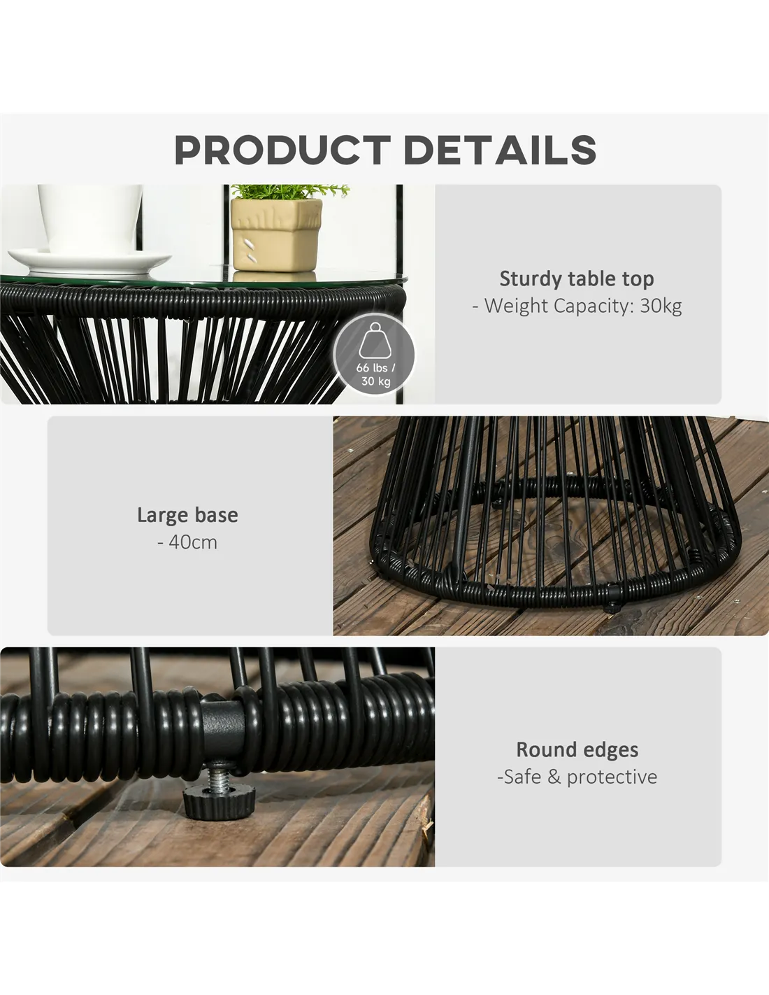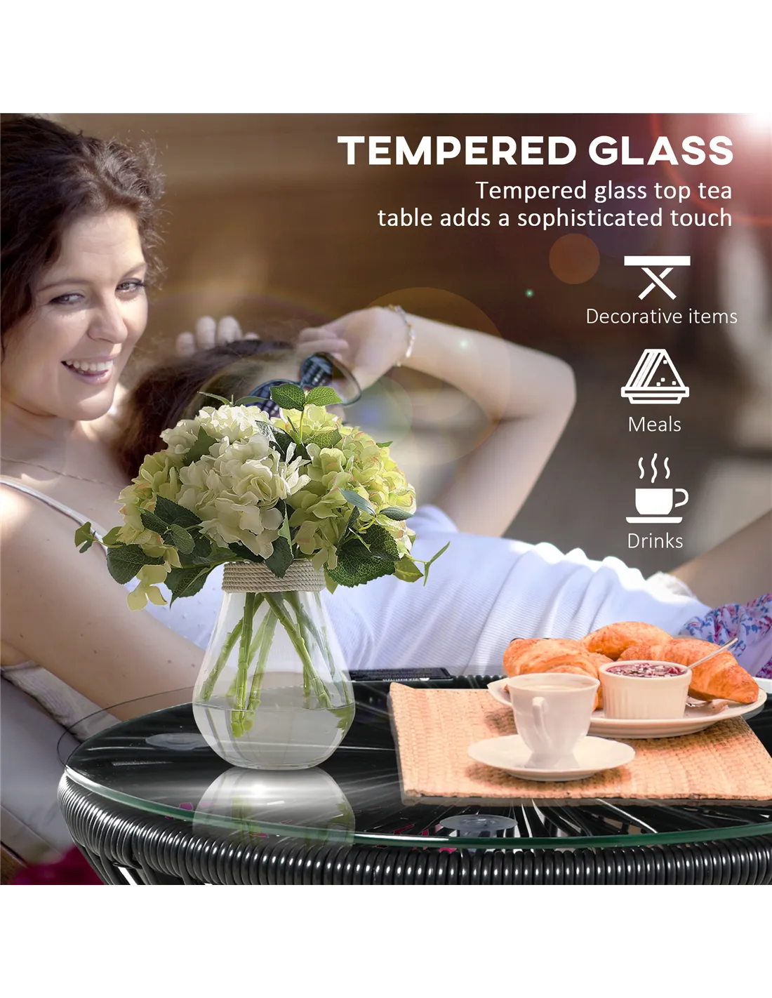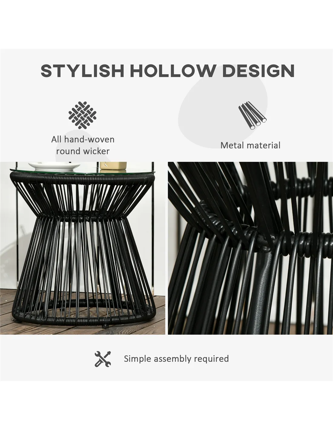 - Ideal for displaying potted plants or floral arrangements, enhancing your outdoor décor with a blend of rattan texture and sleek glass.