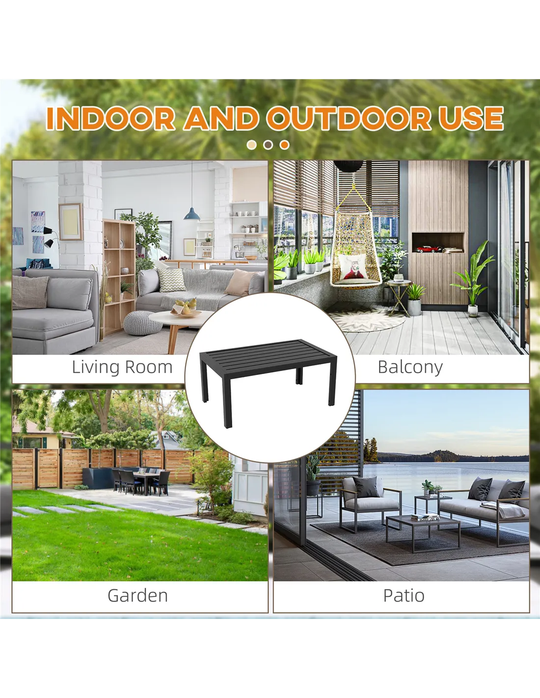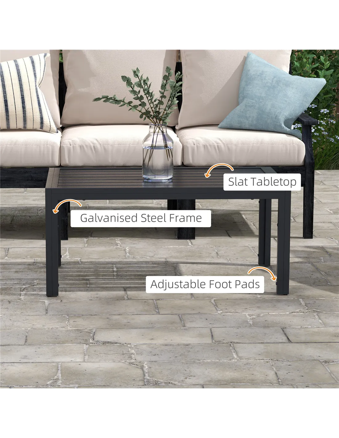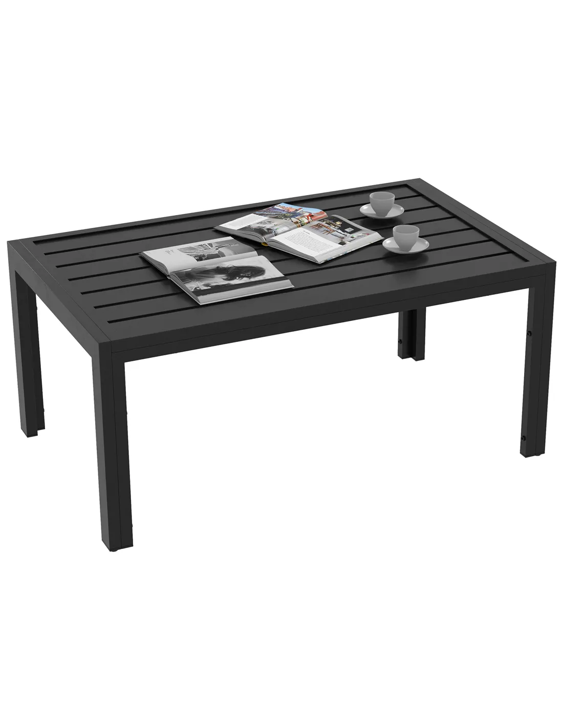 Outsunny Outdoor Side Table, Rectangular Patio Coffee Side Table with Steel Frame and Slat Tabletop for Garden, Balcony, Black