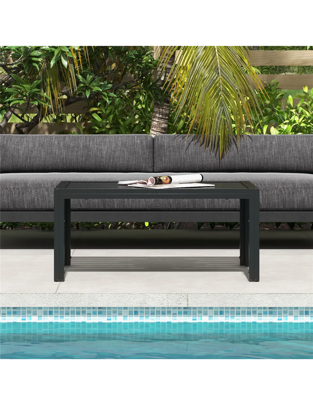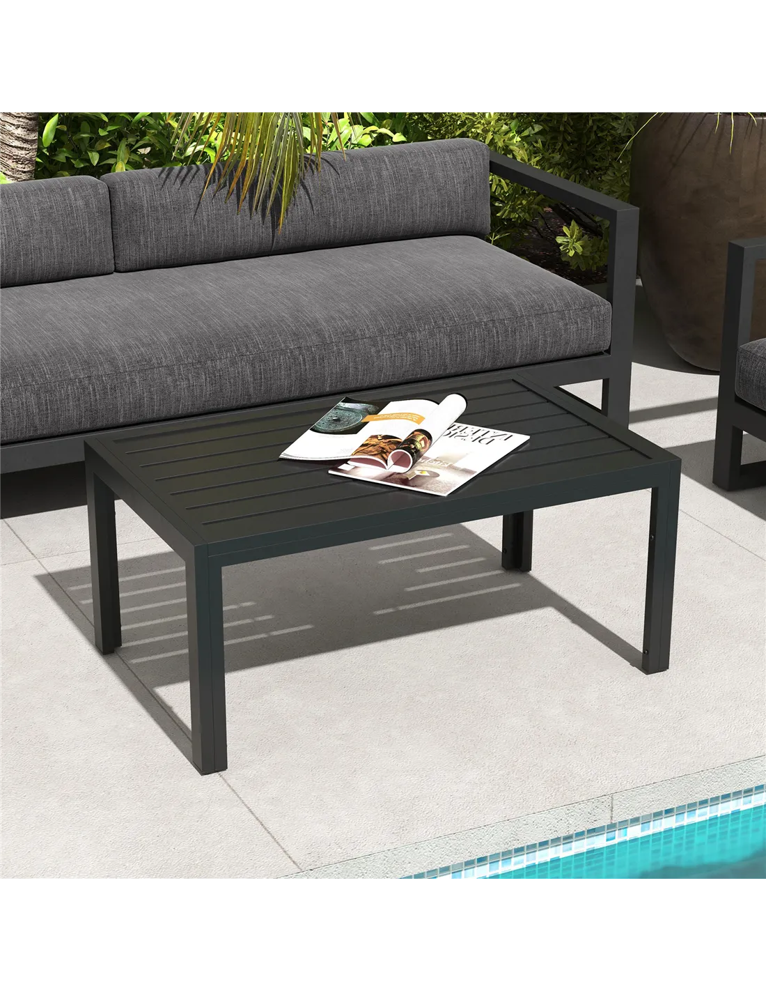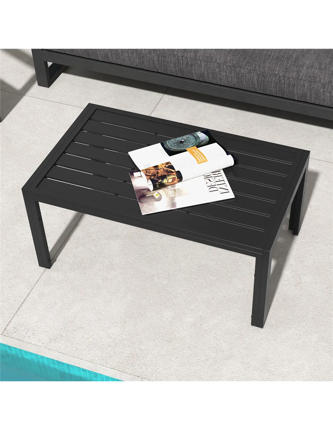 Outsunny Outdoor Side Table, Rectangular Patio Coffee Side Table with Steel Frame and Slat Tabletop for Garden, Balcony, Black