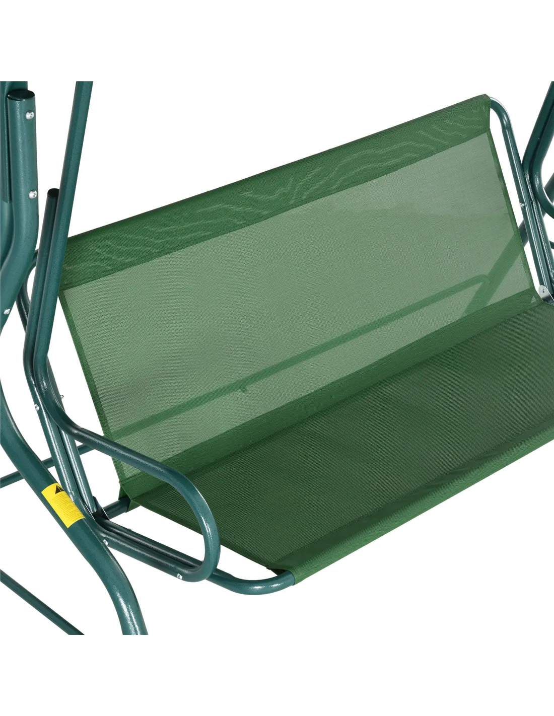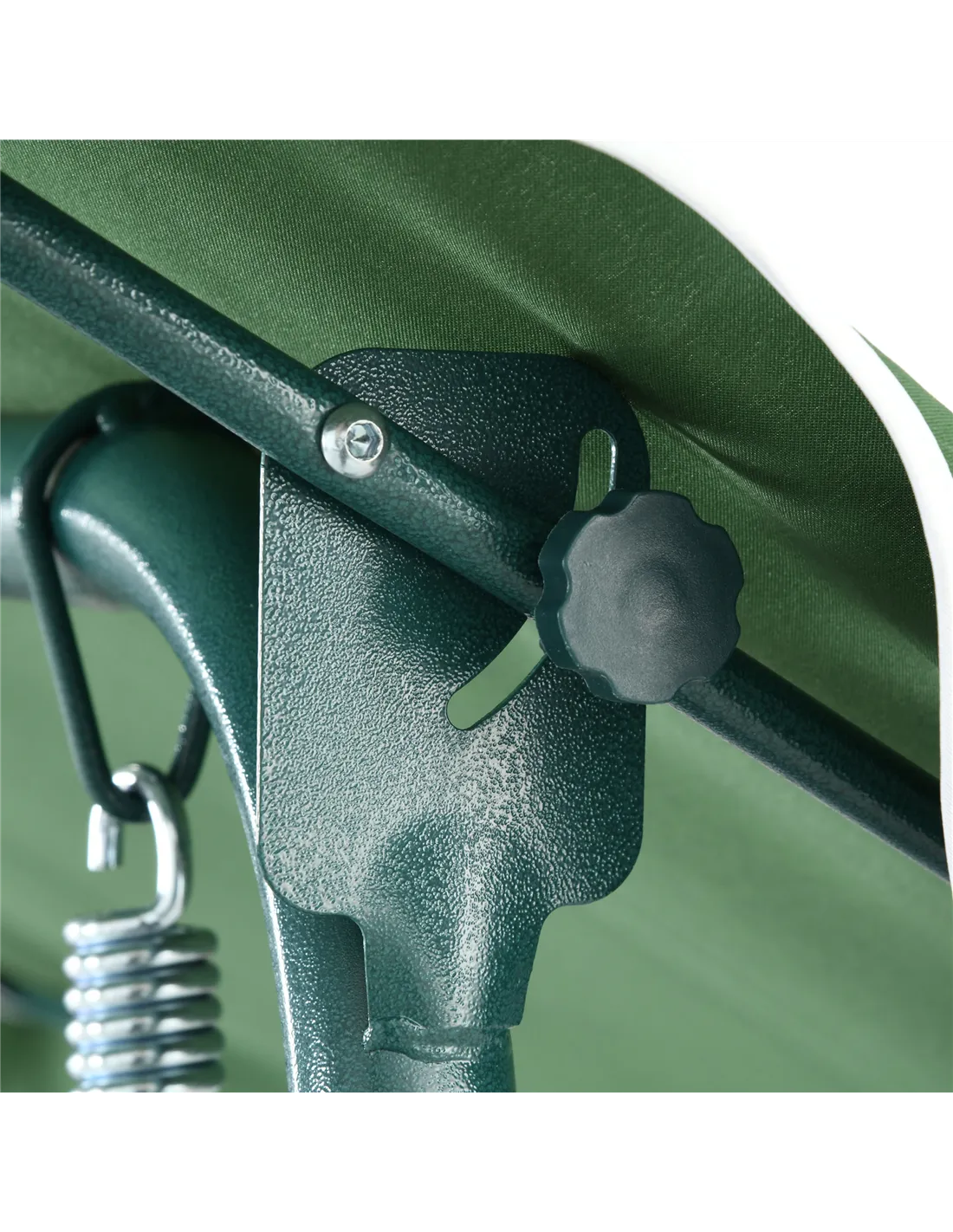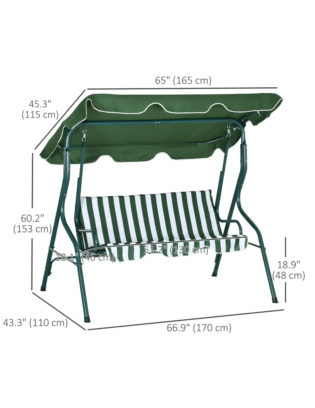 Outsunny 3 Seater Garden Swing Seat Chair Outdoor Bench with Adjustable Canopy and Metal Frame, Green Stripes