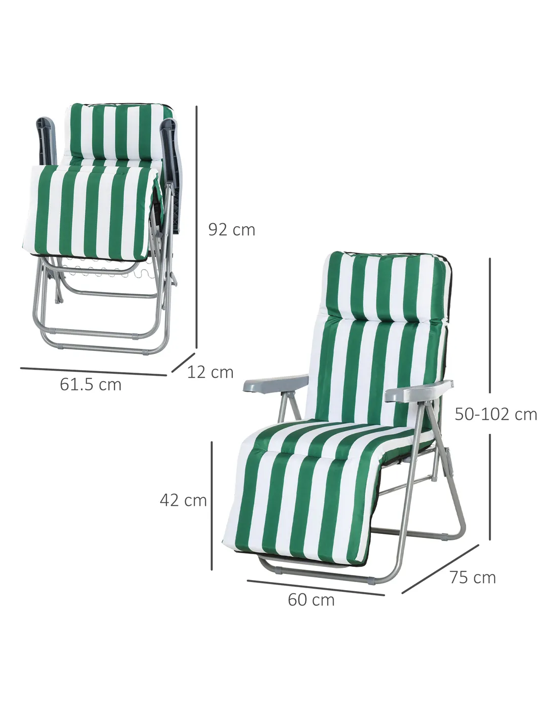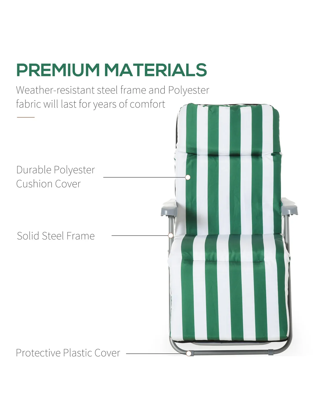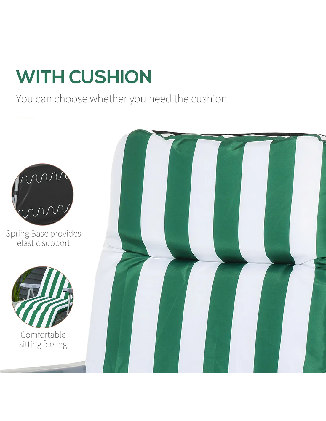 Outsunny 2 Pieces Outdoor Sun Lounger Set with Cushions, Patio Folding 5-Level Adjustable Backrest Recliner Chairs Set of 2 with High Backrest and Armrests, Green & White