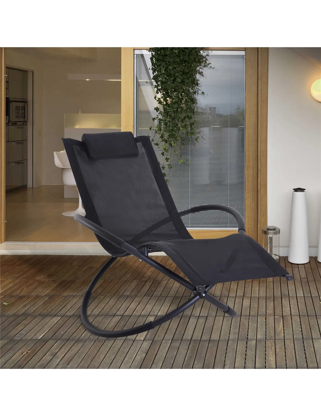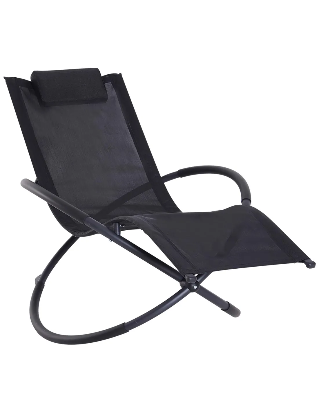 Outsunny Outdoor Orbital Lounger Zero Gravity Patio Chaise Foldable Rocking Chair w/ Pillow Black