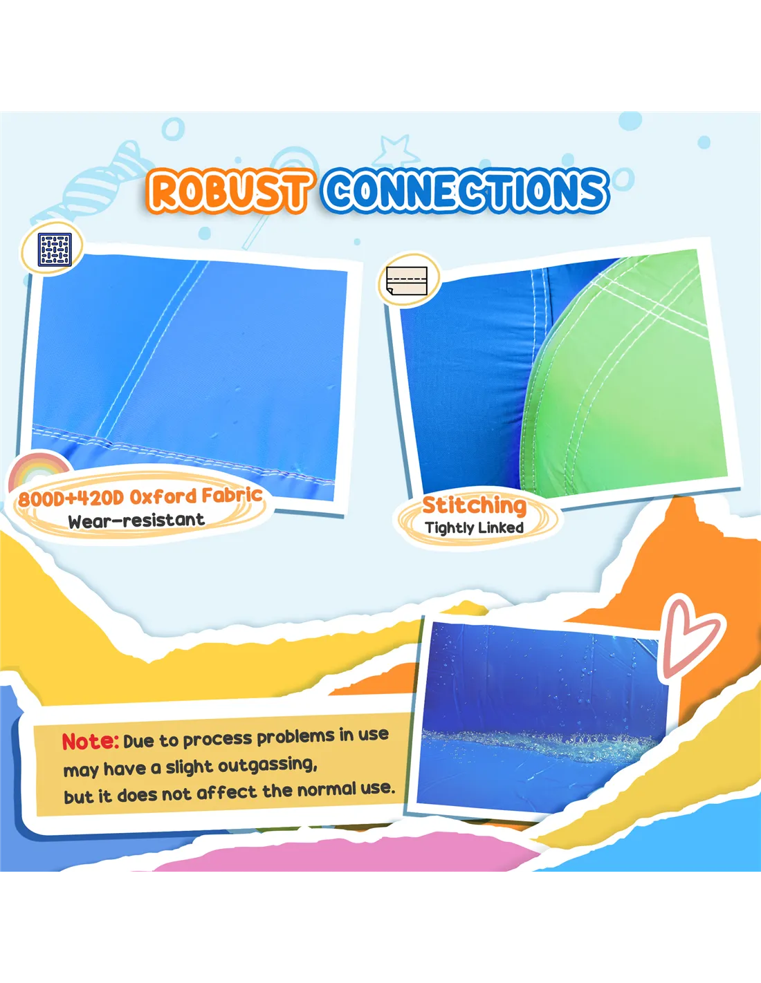 The included 450W blower produces a sound level of approximately 75dB, which is noticeable but not disruptive, ensuring a pleasant play environment.