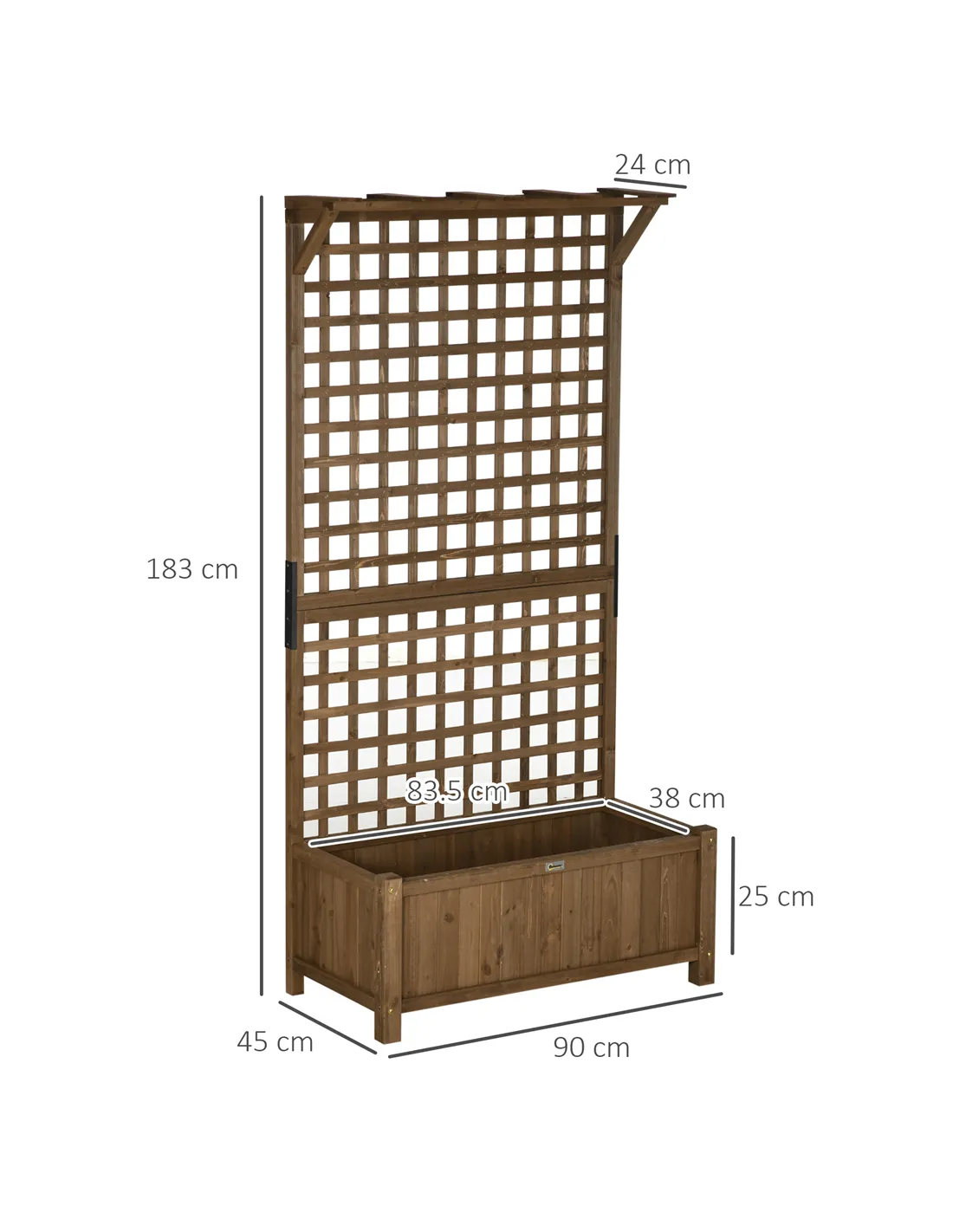 Garden planters give dedicated growing space practically anywhere you want. This garden planter, from Outsunny, does more: it also comes with a trellis back and small roof for hanging plants. Made from fir wood, the structure is strong - suitable for outdoor use. Features holes in the bottom of the outdoor planter for water drainage. A slightly elevated design to help protect plants from animals and pests.