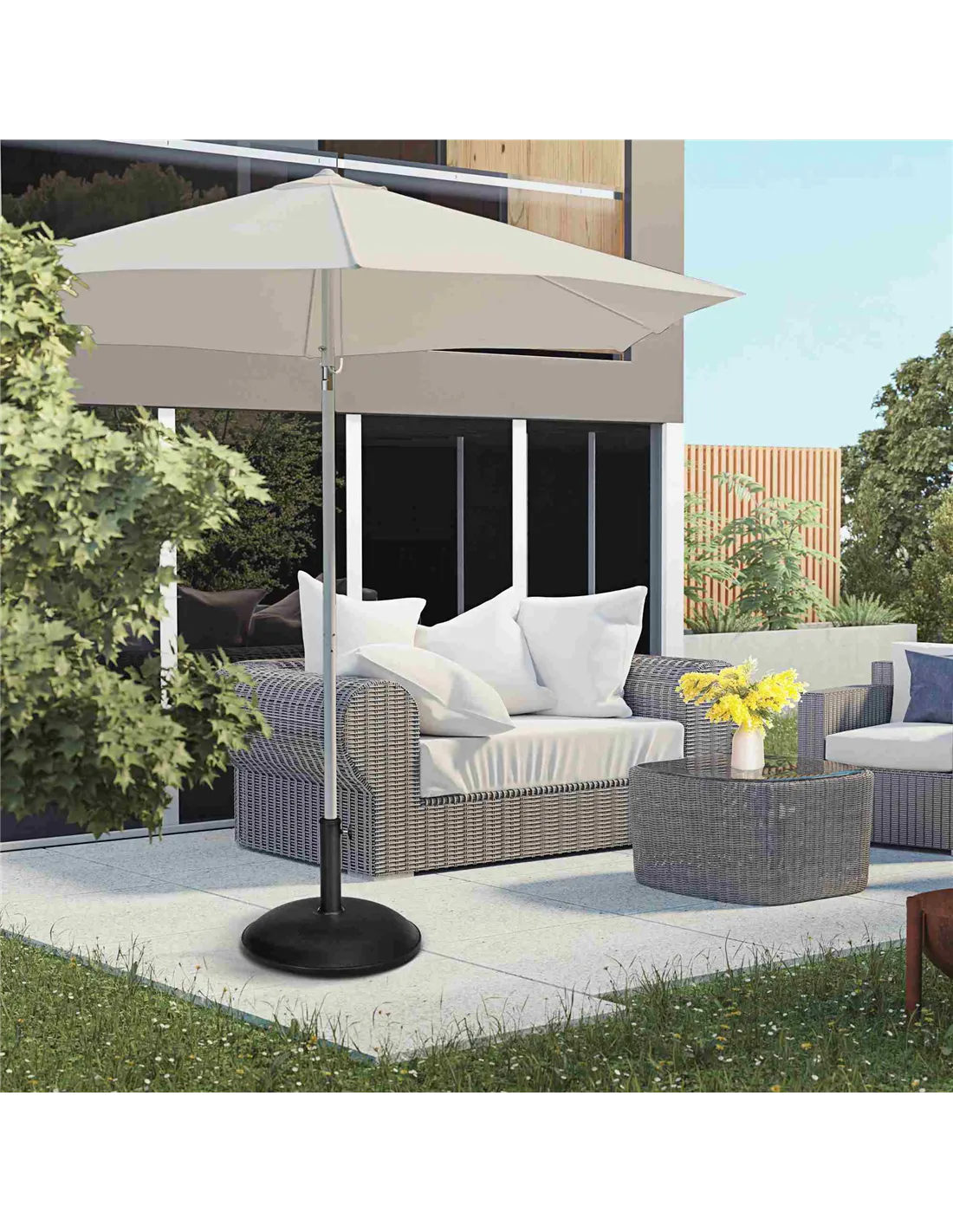 - Secure your garden parasol effortlessly on patios, decking, or outdoor dining areas with this robust cement base.