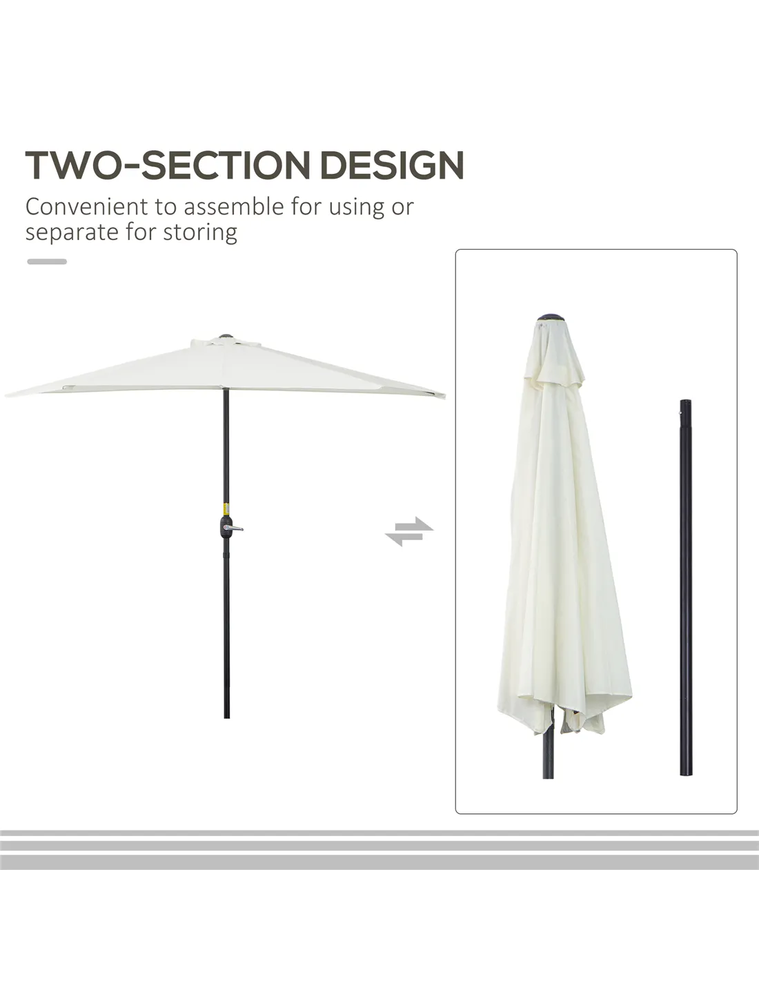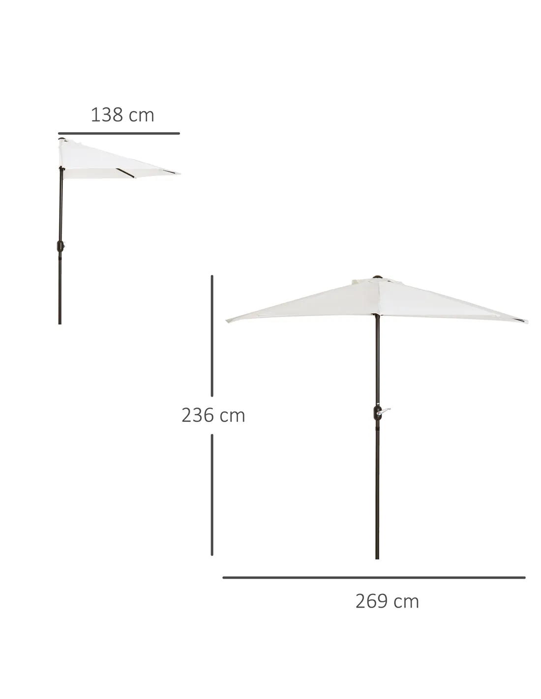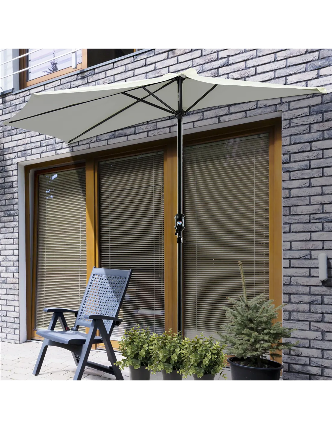 - Can be easily positioned against walls or railings thanks to its half parasol design, maximising space without compromising coverage.