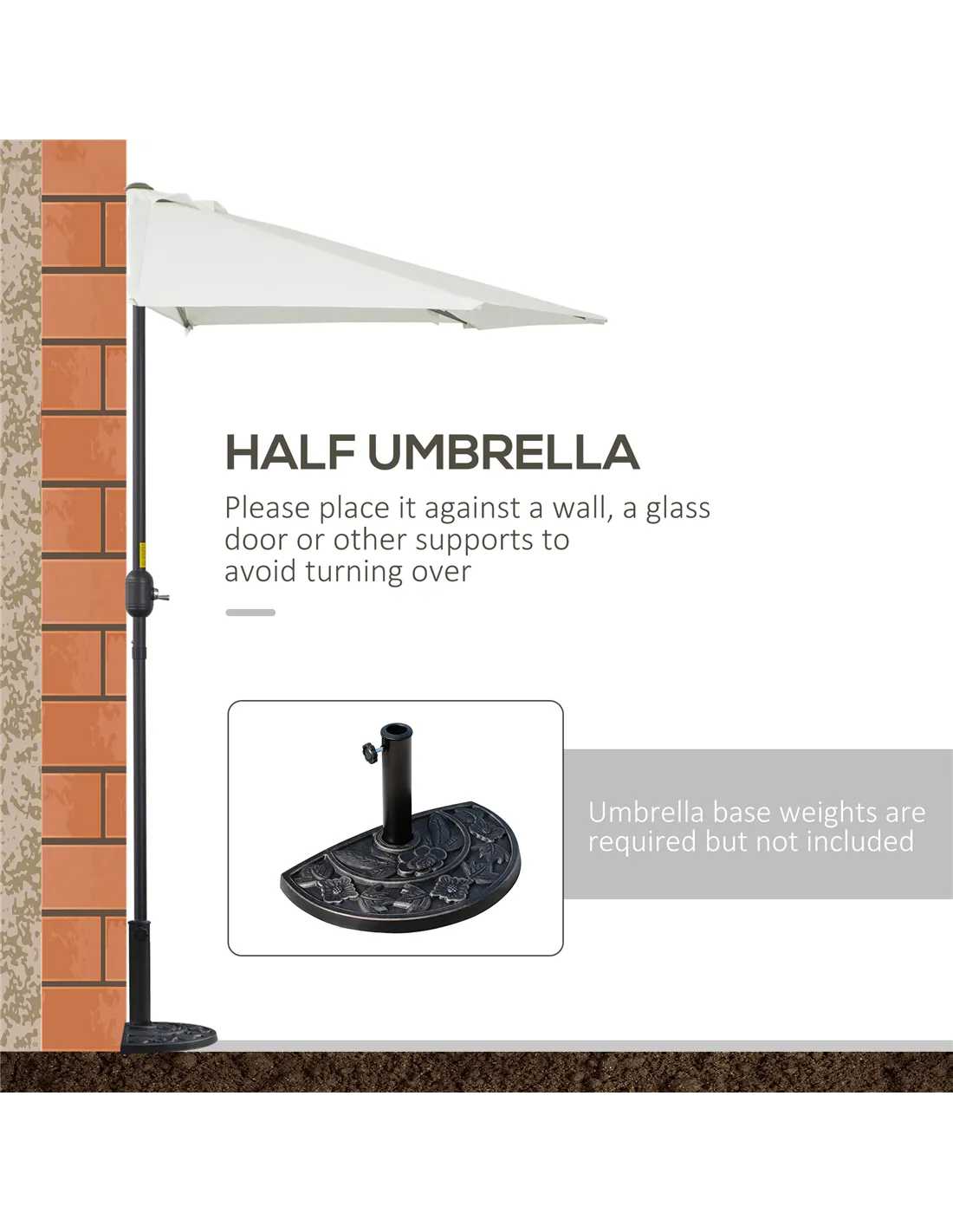 Outsunny 2.7m Garden Half Parasol, Outdoor Balcony Umbrella with 5 Steel Ribs, Patio Sun Shade, Cream White
