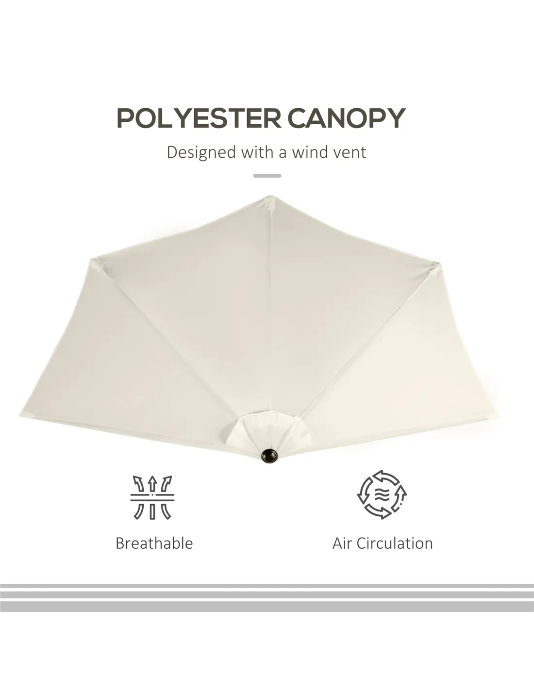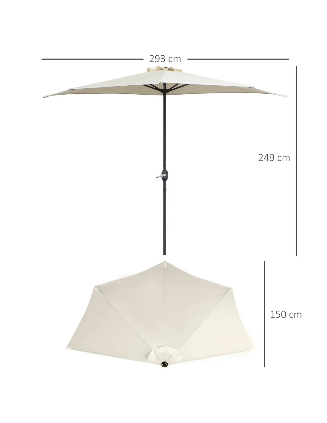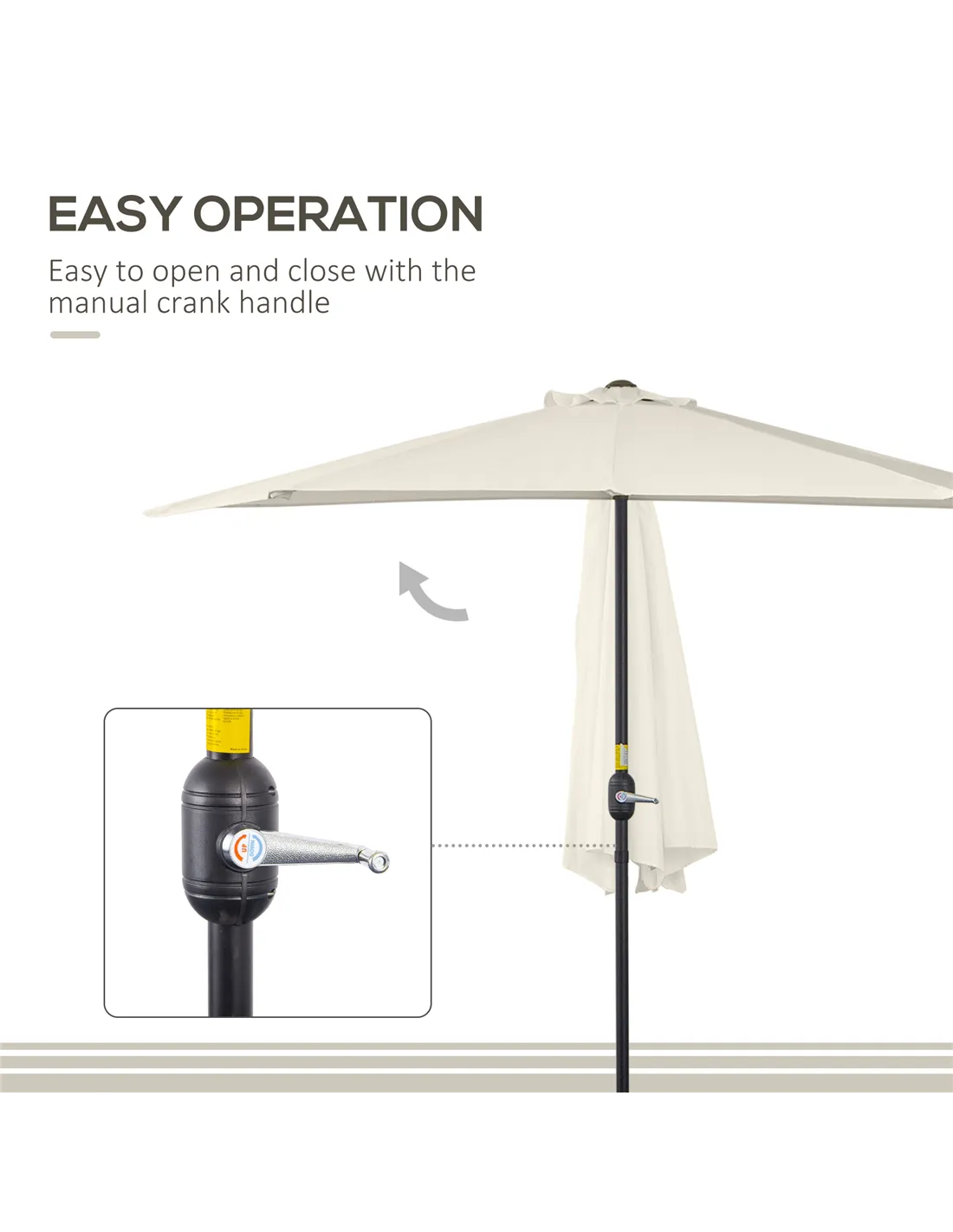 Outsunny 3(m) Half Parasol, Semi Round Umbrella with Metal Frame, Crank Handle for Balcony, Garden, Cream White