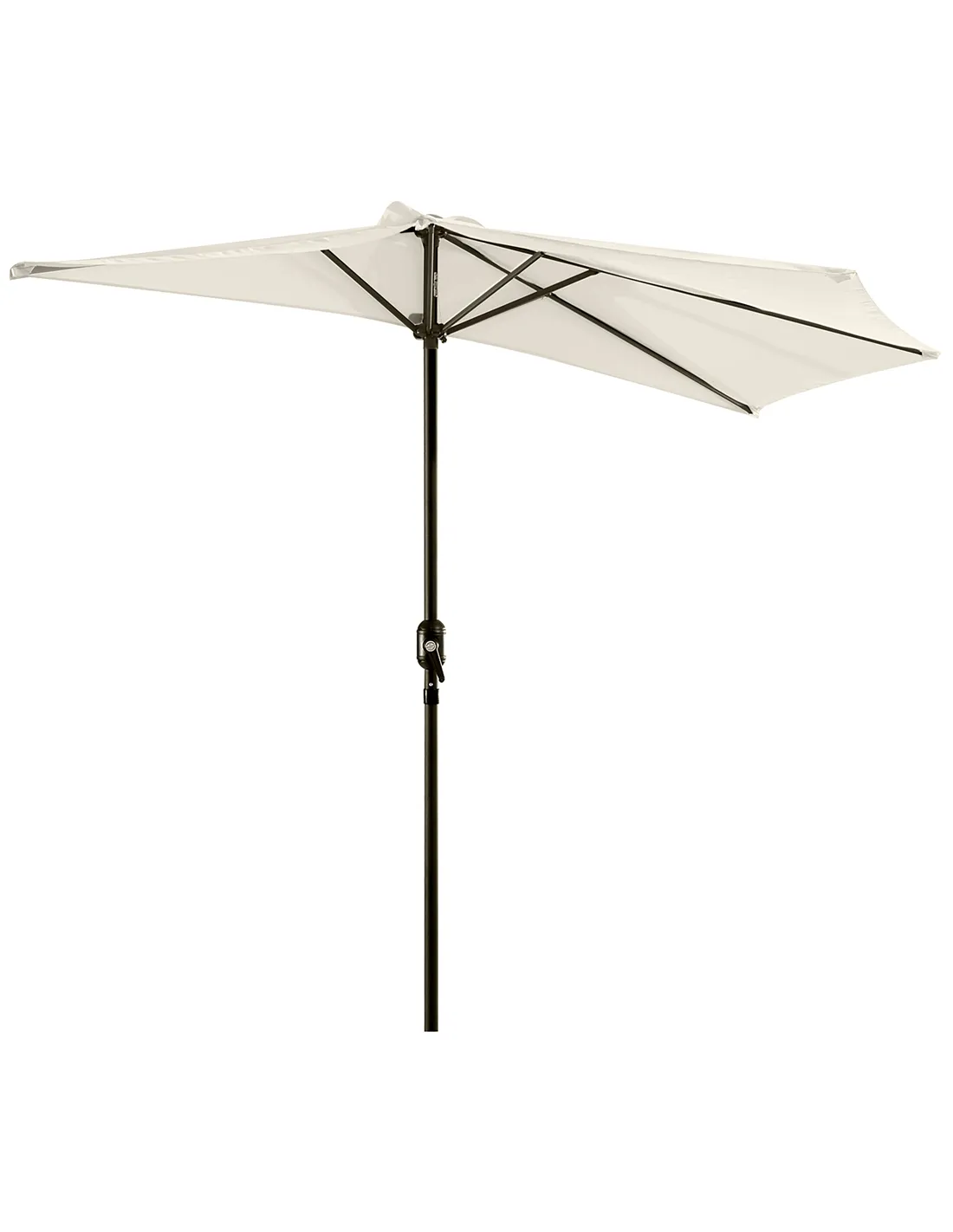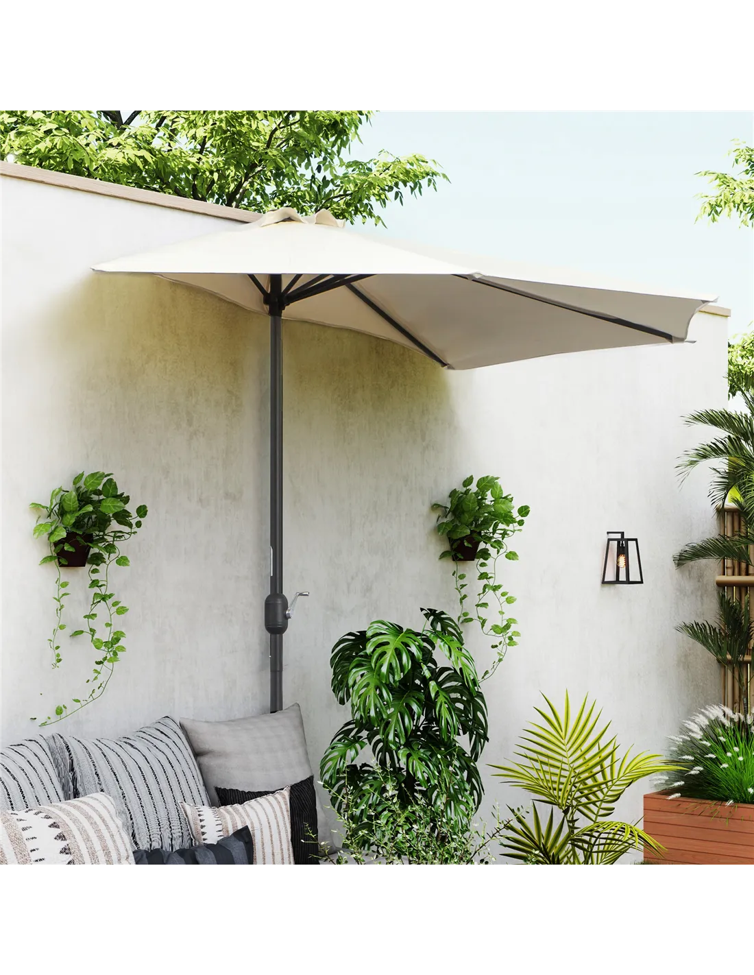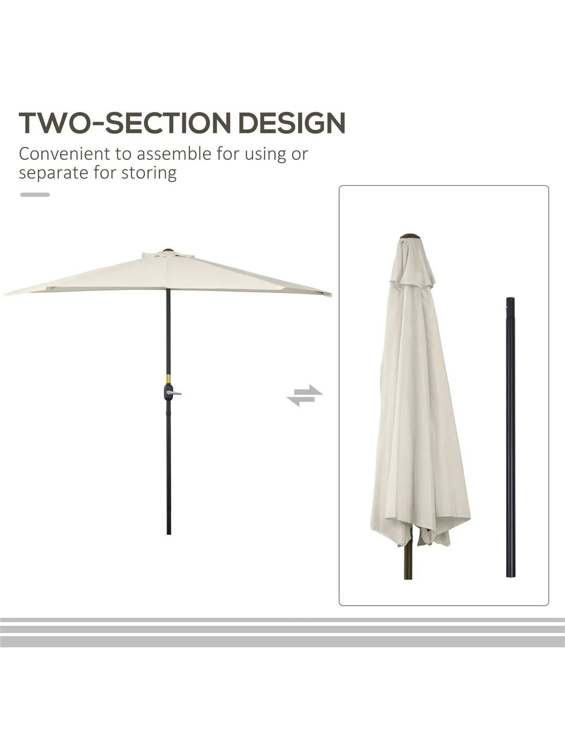 Outsunny 3(m) Half Parasol, Semi Round Umbrella with Metal Frame, Crank Handle for Balcony, Garden, Cream White