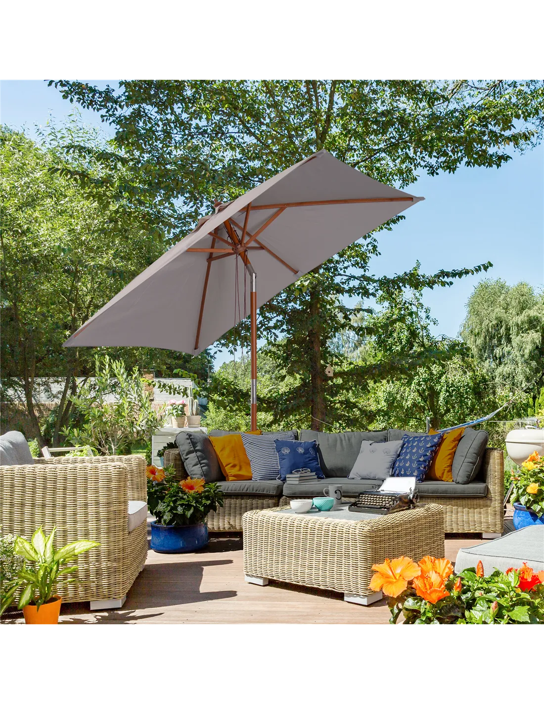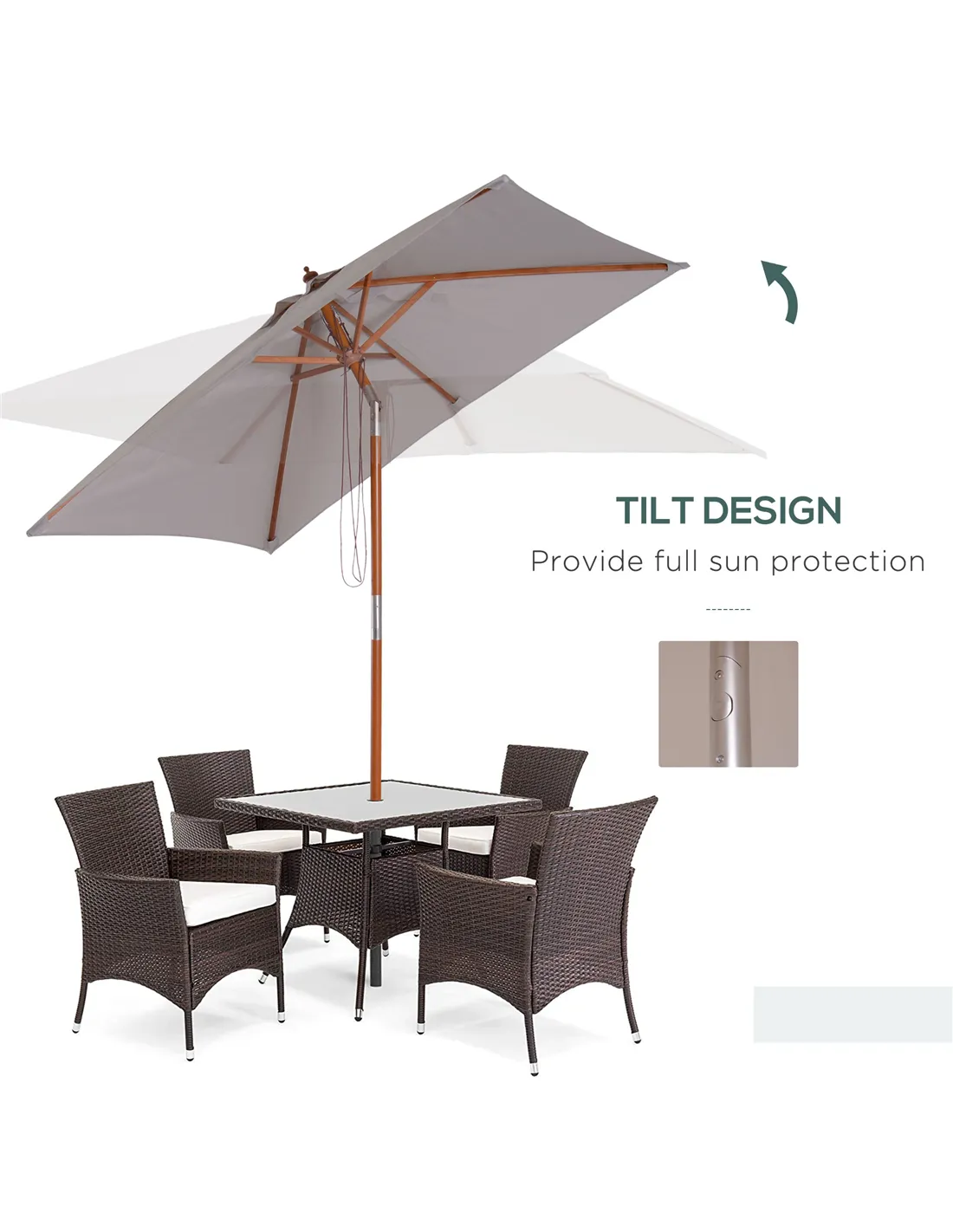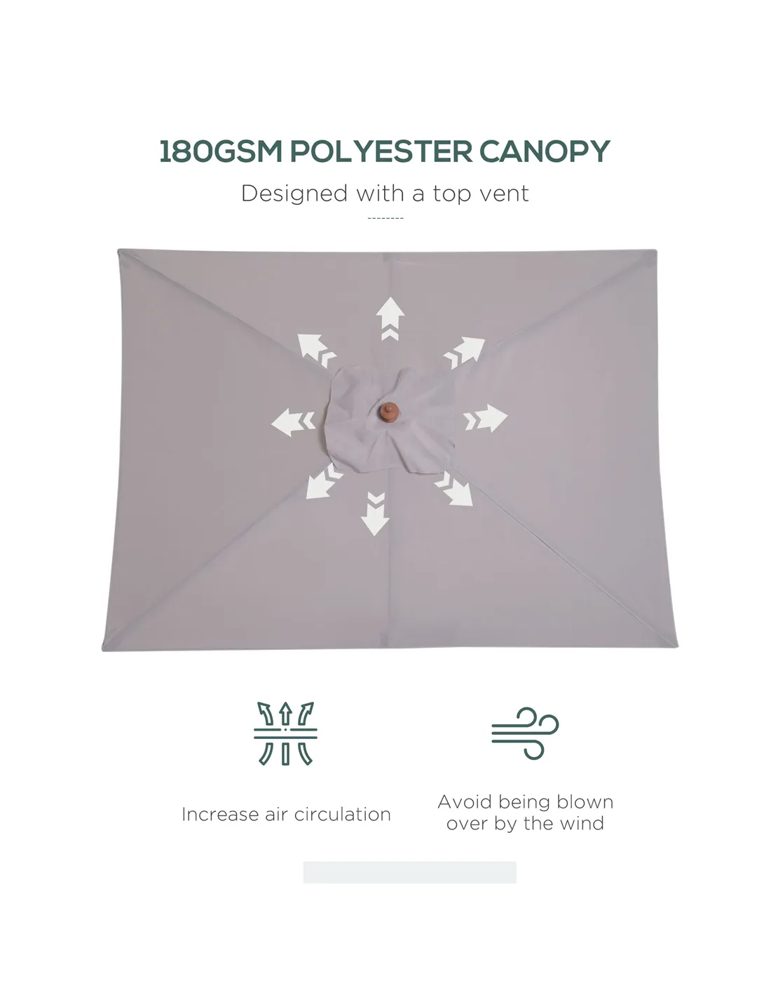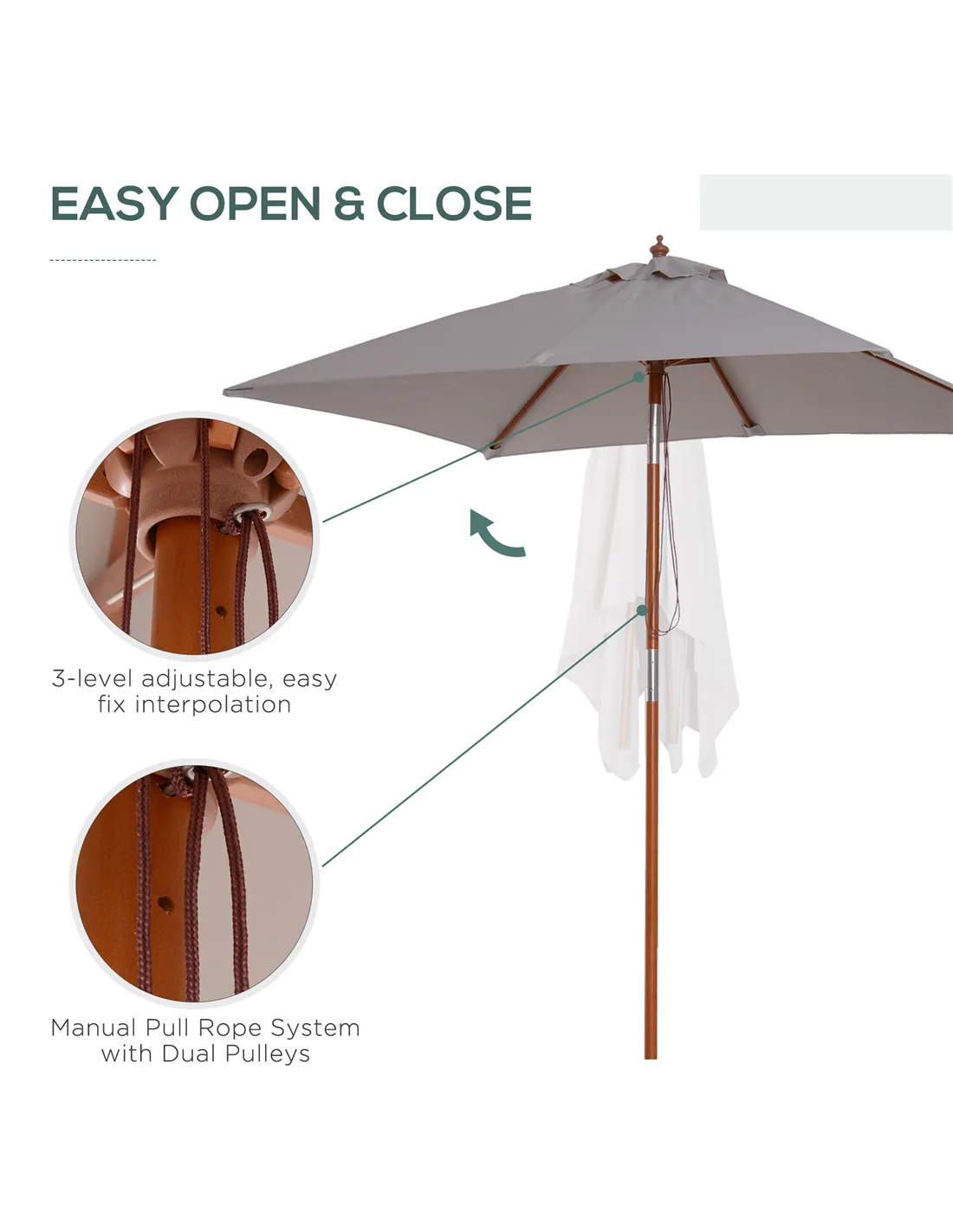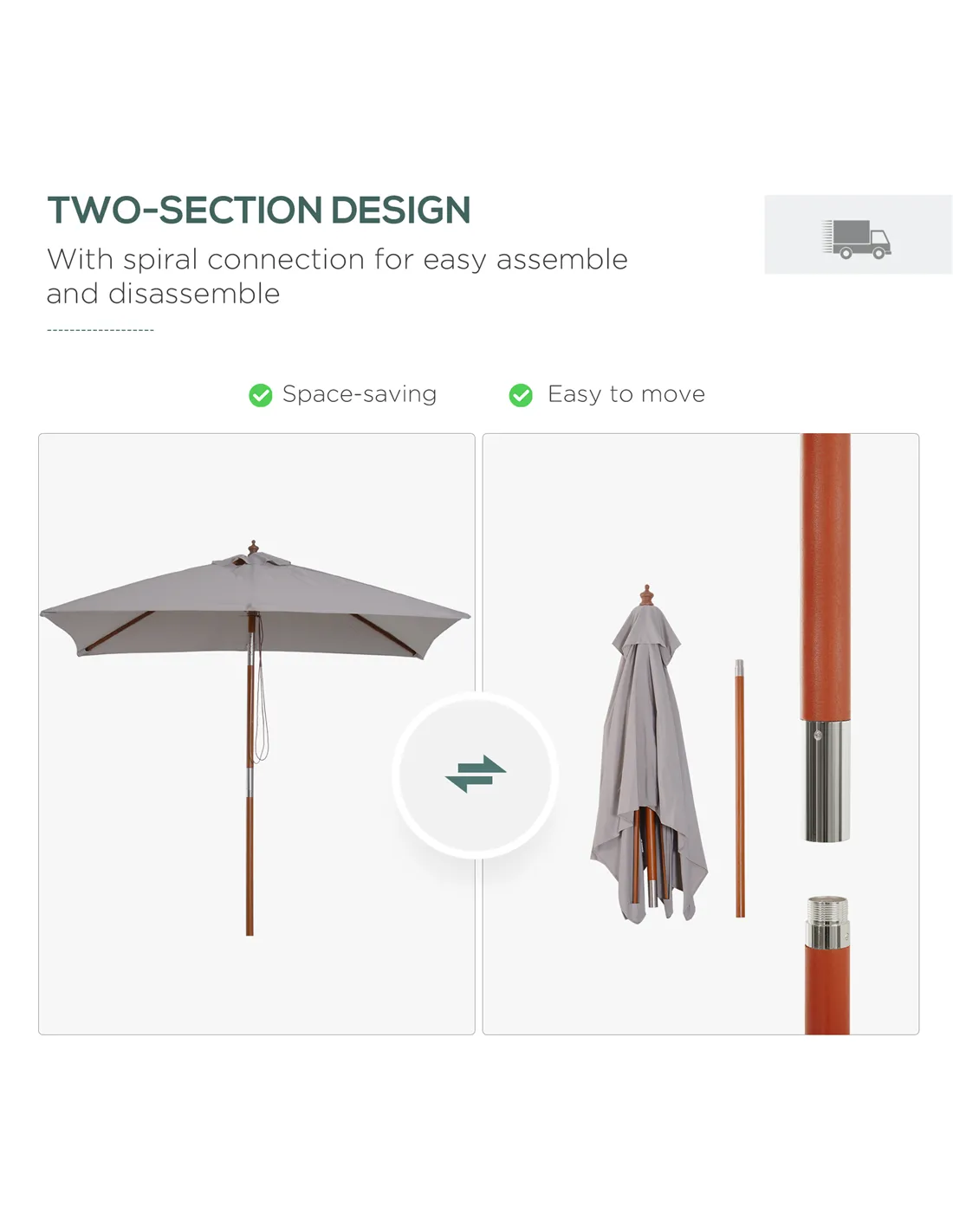 Outsunny 2m Tilting Wooden Pole Parasol - Grey
