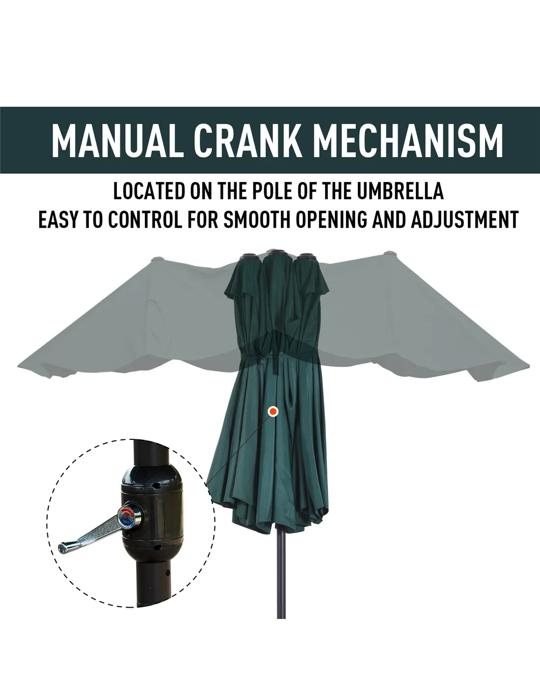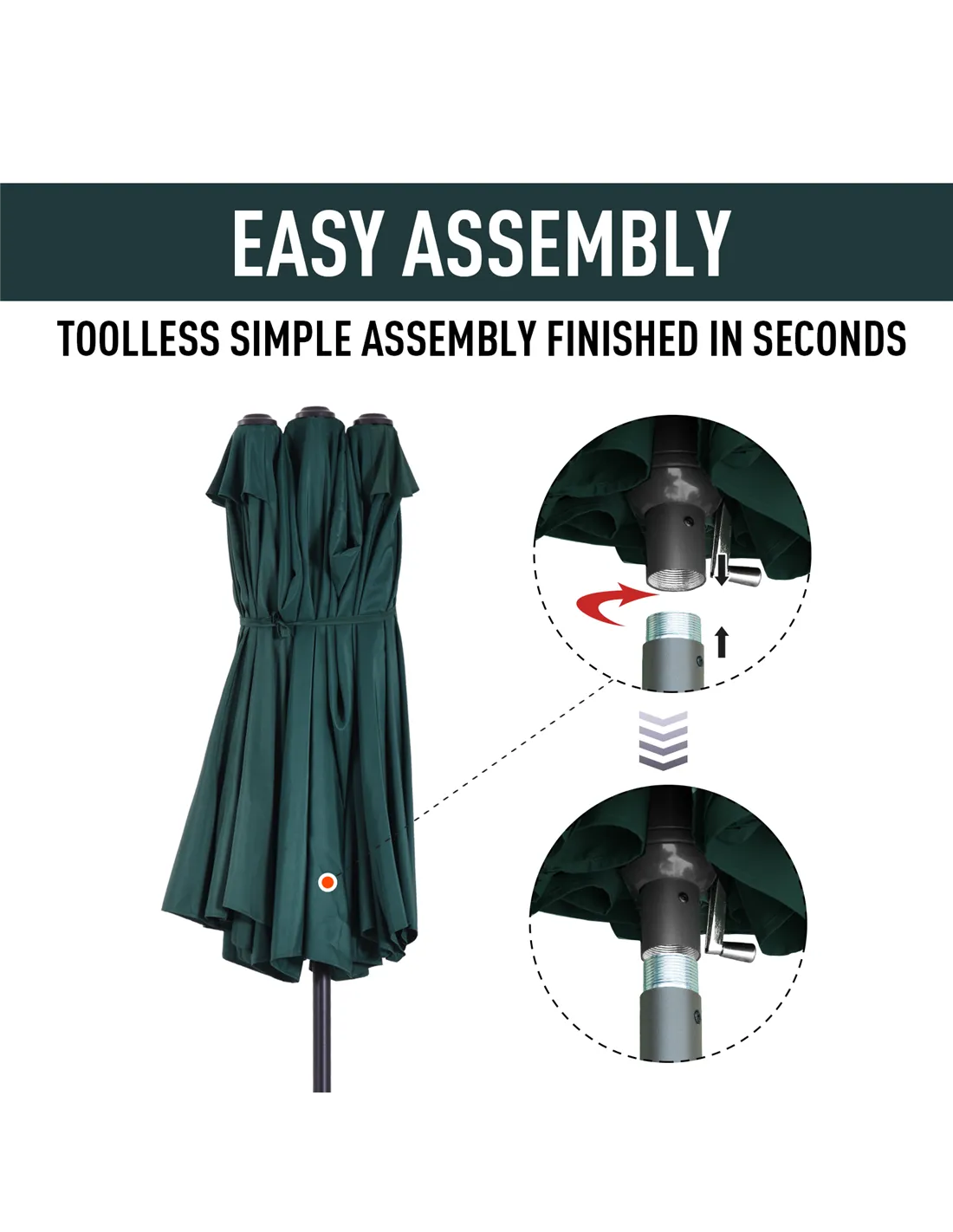 - Double canopy design garden umbrella covering a 4.6M diameter area