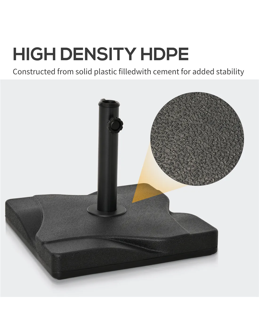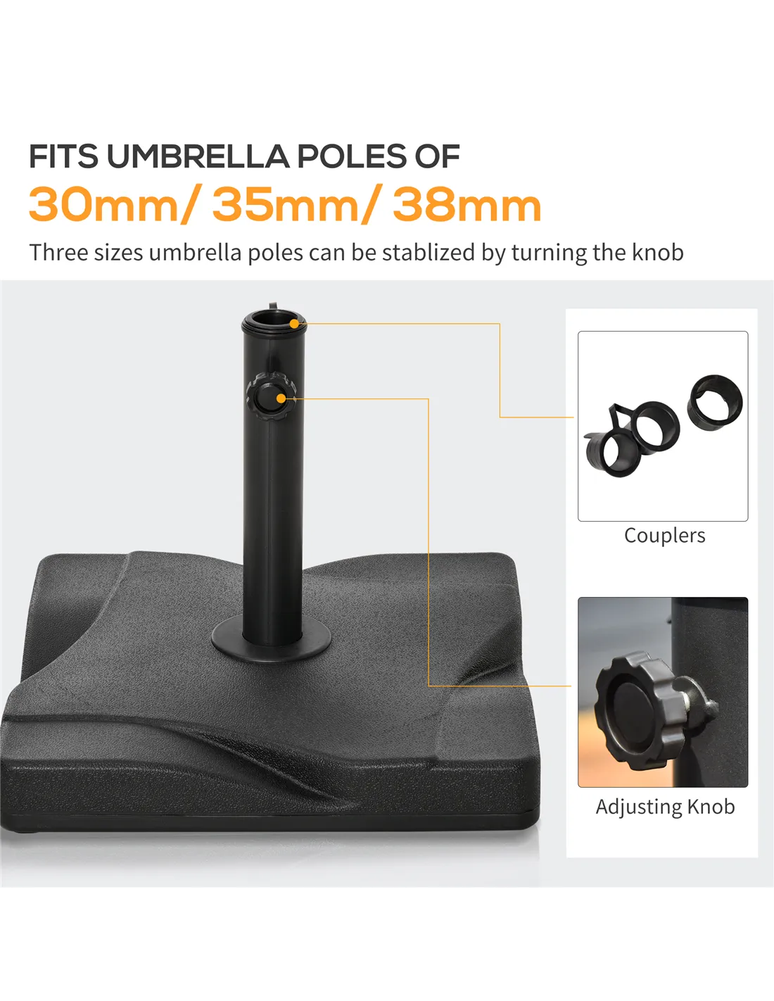 Outsunny 20kg Square Parasol Base Outdoor Garden Cement Umbrella Weight Stand Holder, Fits Φ32mm,Φ38mm,Φ48mm Pole - Black