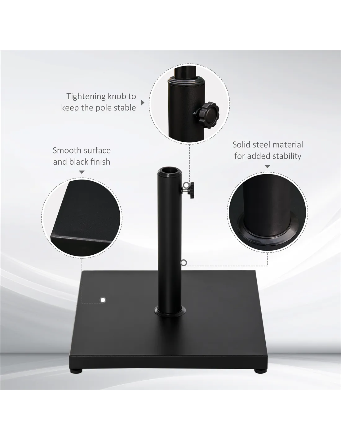 Outsunny Φ35/38/48MM 18KG Steel Square Parasol Stand Base w/ Adjustable Knob Umbrella Stand Garden Patio Outdoor Home, Black