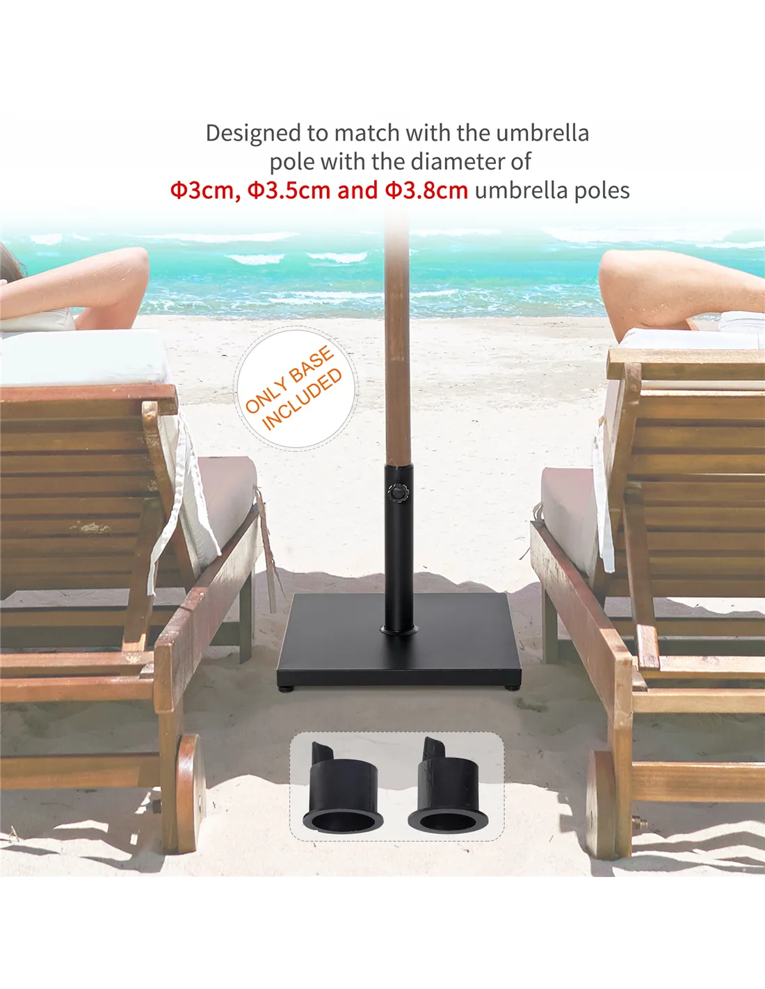- Adjustable inserts allow compatibility with various parasol pole sizes (35mm, 38mm, 48mm), making it versatile for different umbrella models.