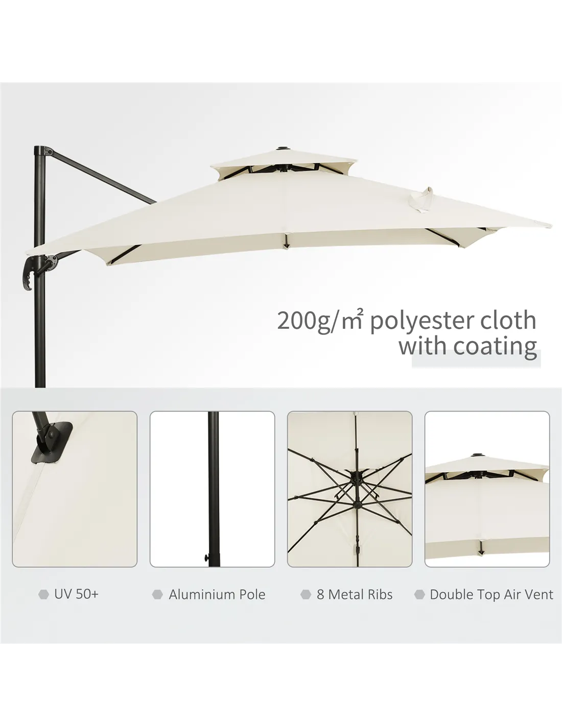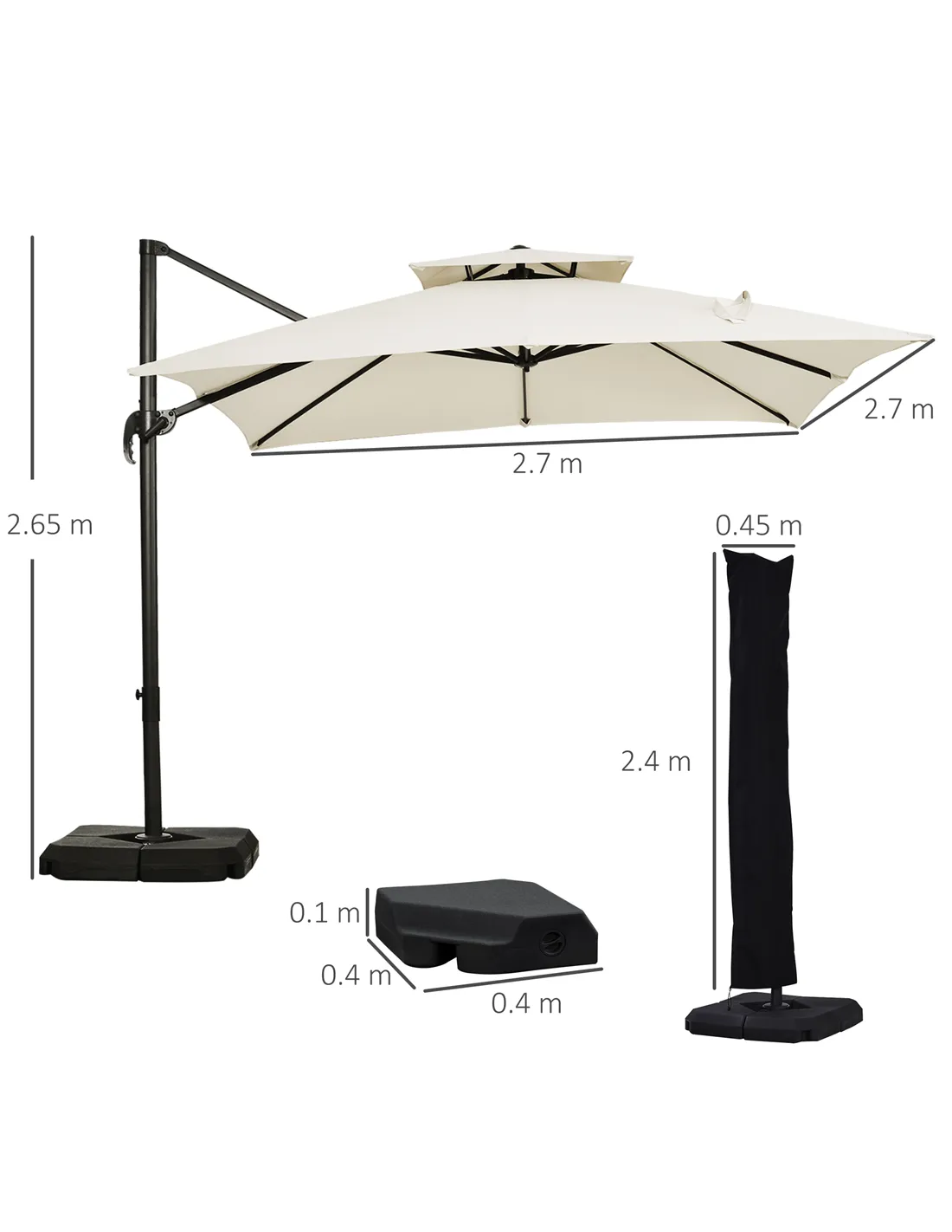 Outsunny Steel Frame Outdoor Roma Cantilever Umbrella
