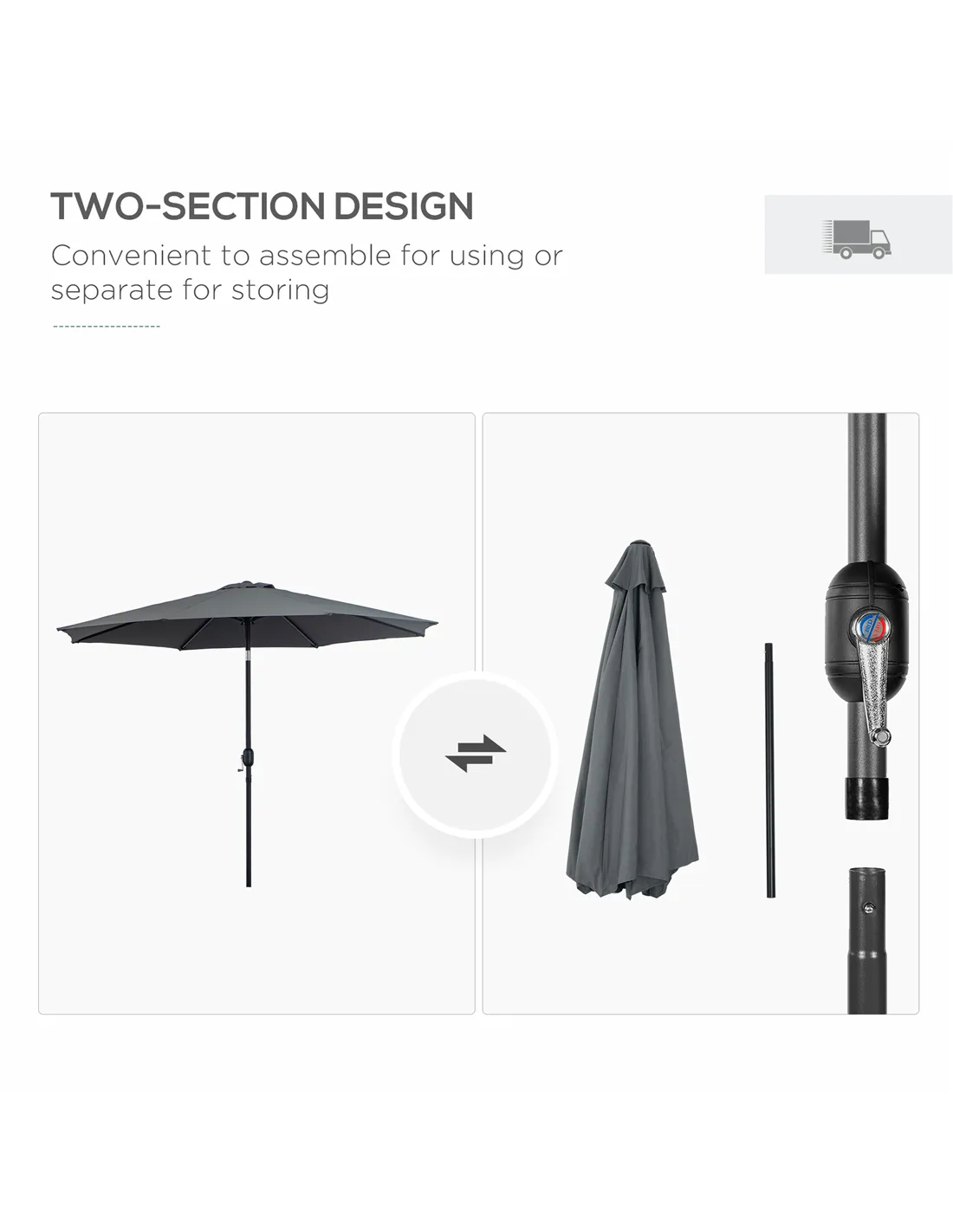 - Φ2.95 m canopy to provide plenty of shelter from the sun