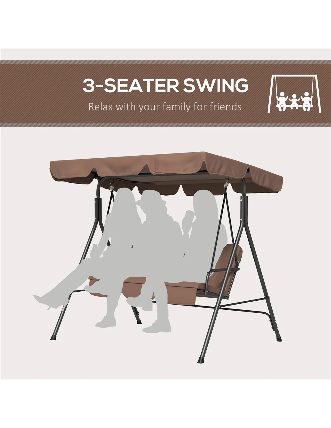Outsunny 3 Seater Garden Swing Chair, Outdoor Swing Chair with Adjustable Canopy, Mental Frame & Cushions, Brown