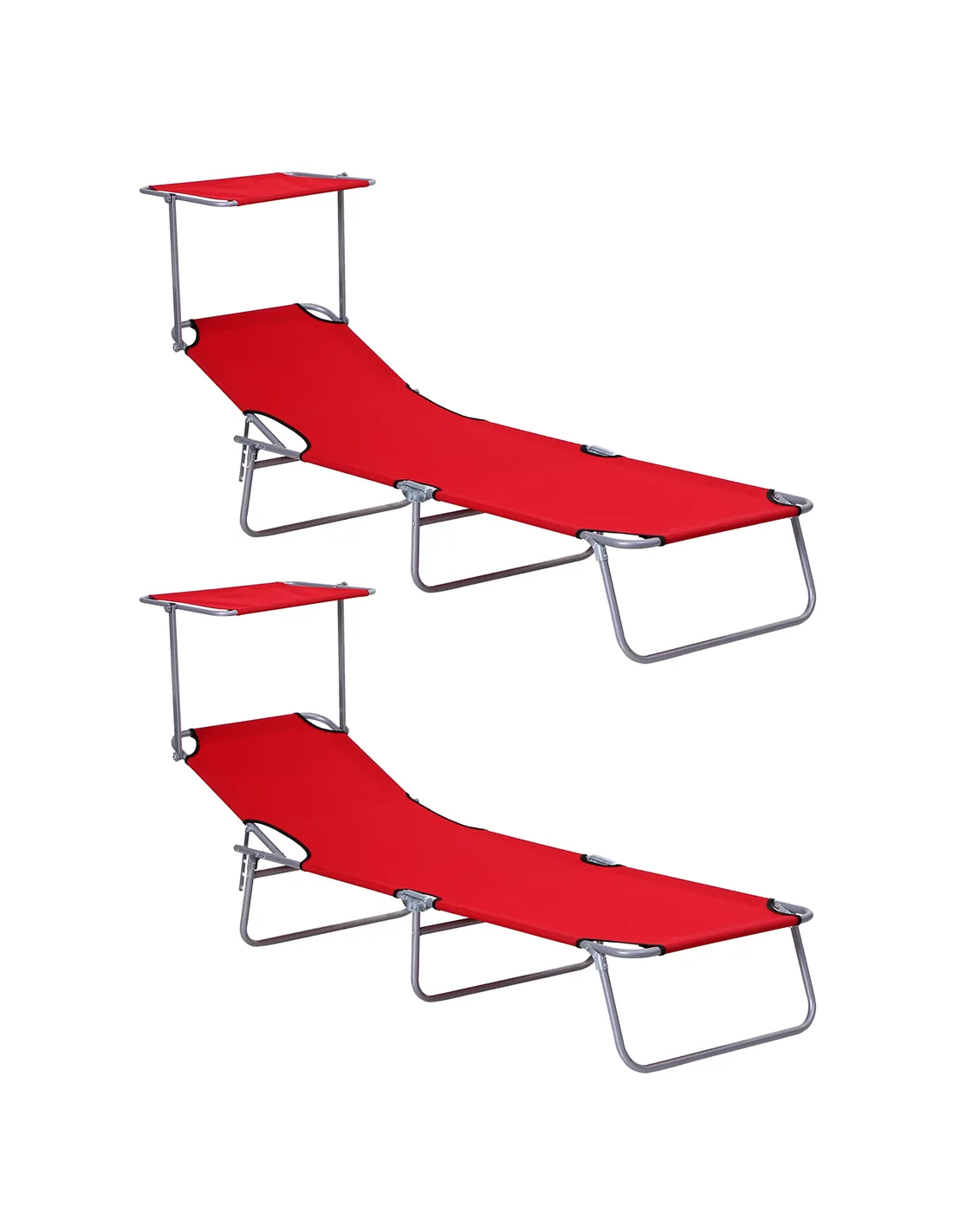 Outsunny 2 Piece Folding Sun Lounger, Lounge Chairs Reclining Sleeping Bed with Adjustable Sun Shade Awning for Beach, Patio