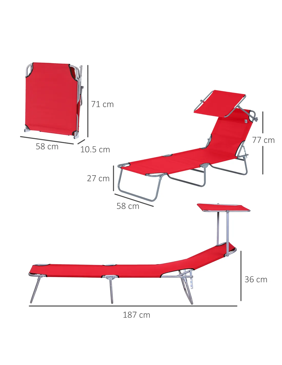 - Max Recline Dimension: 187L x 58W x 36H cm
