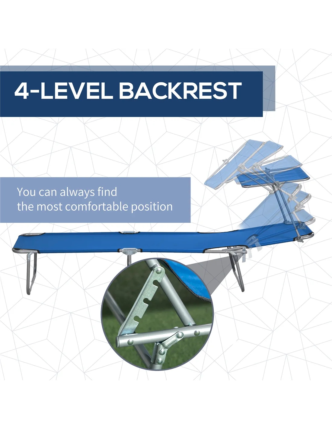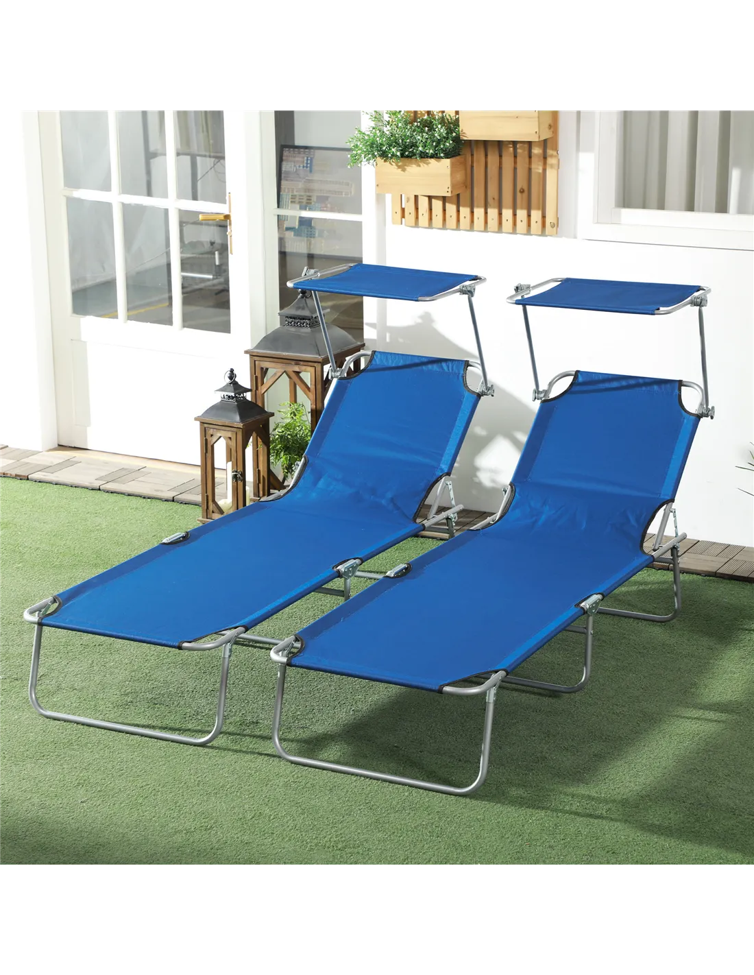 Outsunny Outdoor Foldable Sun Lounger Set of 2, 4 Level Adjustable Backrest Reclining Sun Lounger Chair with Angle Adjust Sun Shade Awning for Beach, Garden, Patio, Blue