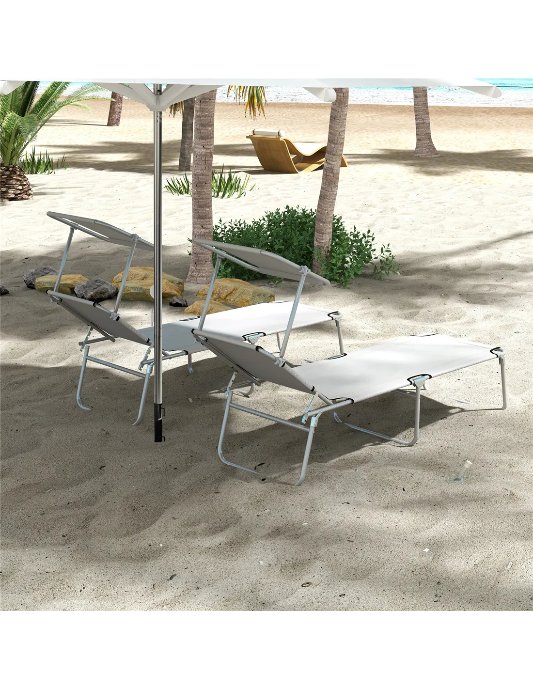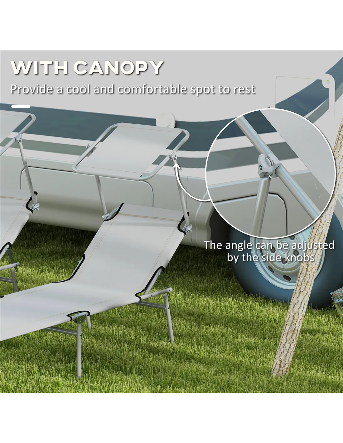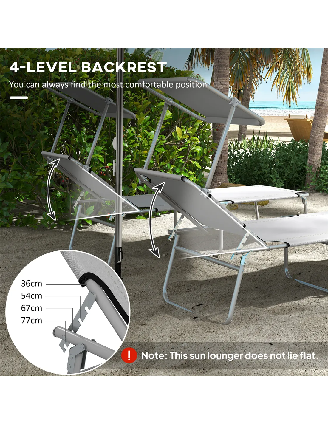 Outsunny Outdoor Foldable Sun Lounger Set of 2, 4 Level Adjustable Backrest Reclining Sun Lounger Chair with Angle Adjust Sun Shade Awning for Beach, Garden, Patio, Light Grey