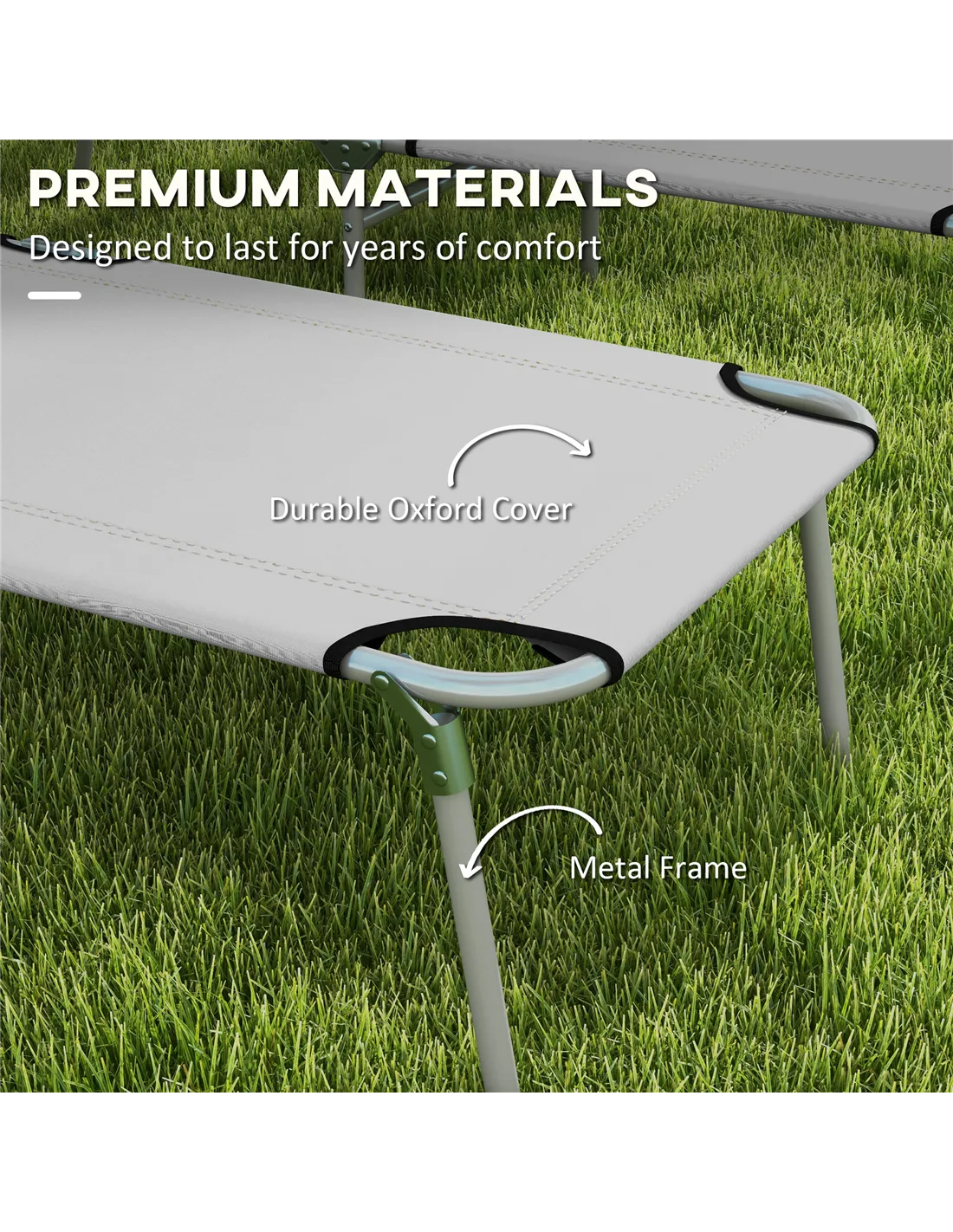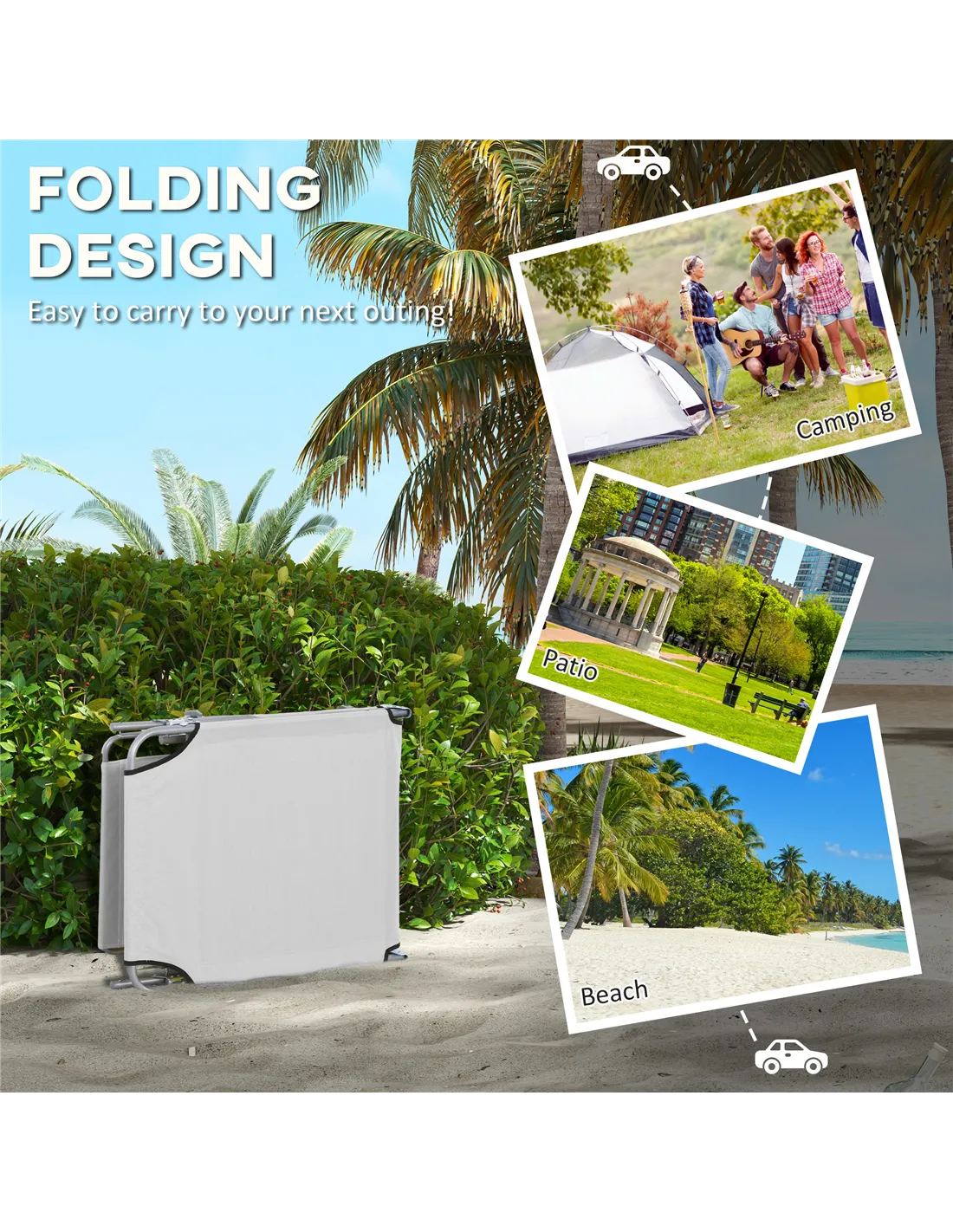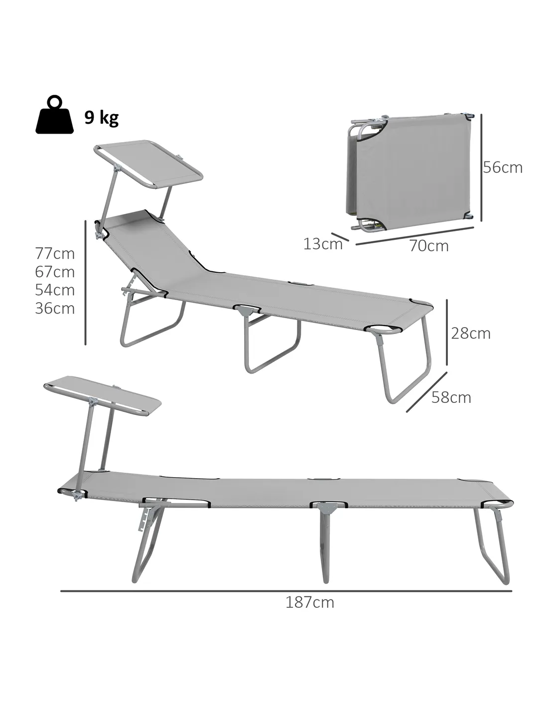 Outsunny Outdoor Foldable Sun Lounger Set of 2, 4 Level Adjustable Backrest Reclining Sun Lounger Chair with Angle Adjust Sun Shade Awning for Beach, Garden, Patio, Light Grey