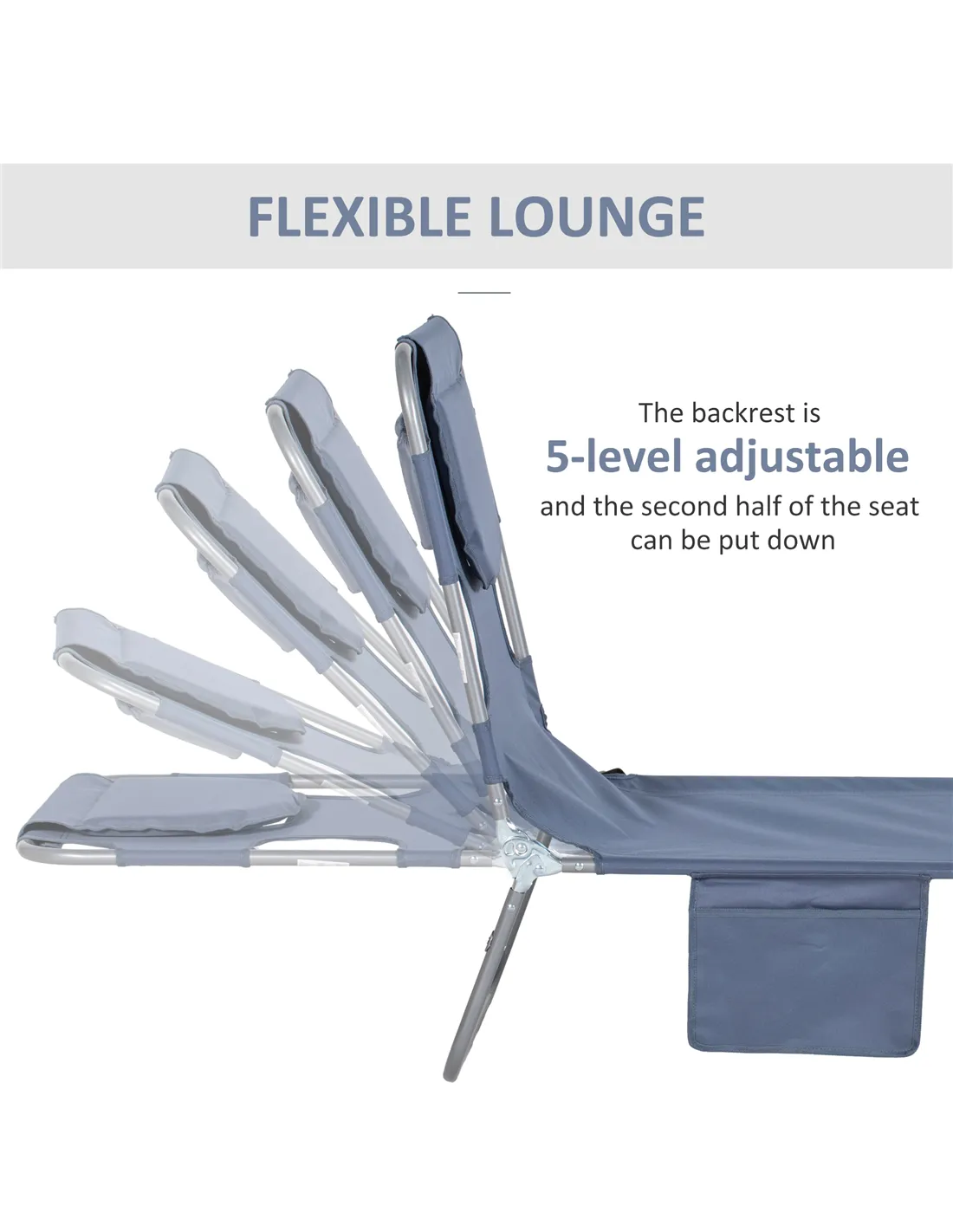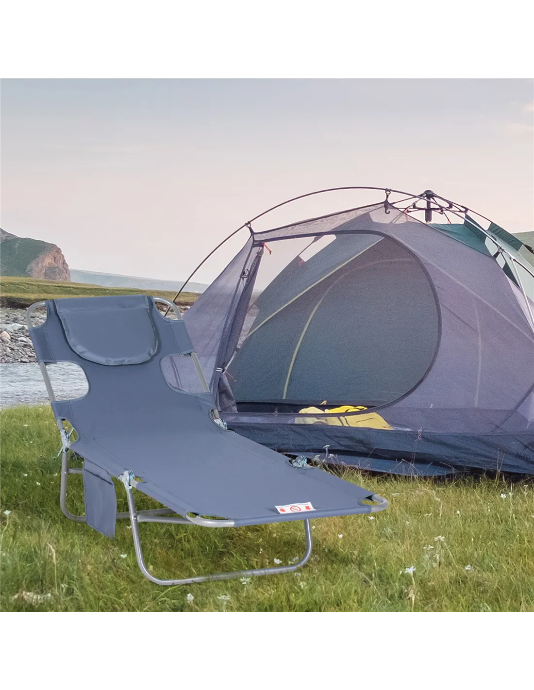 Outsunny Foldable Sun Lounger, Beach Chaise Lounge with Reading Hole, Arm Slots, 5-Position Adjustable Backrest, Side Pocket, Pillow for Garden, Beach, Pool, Grey