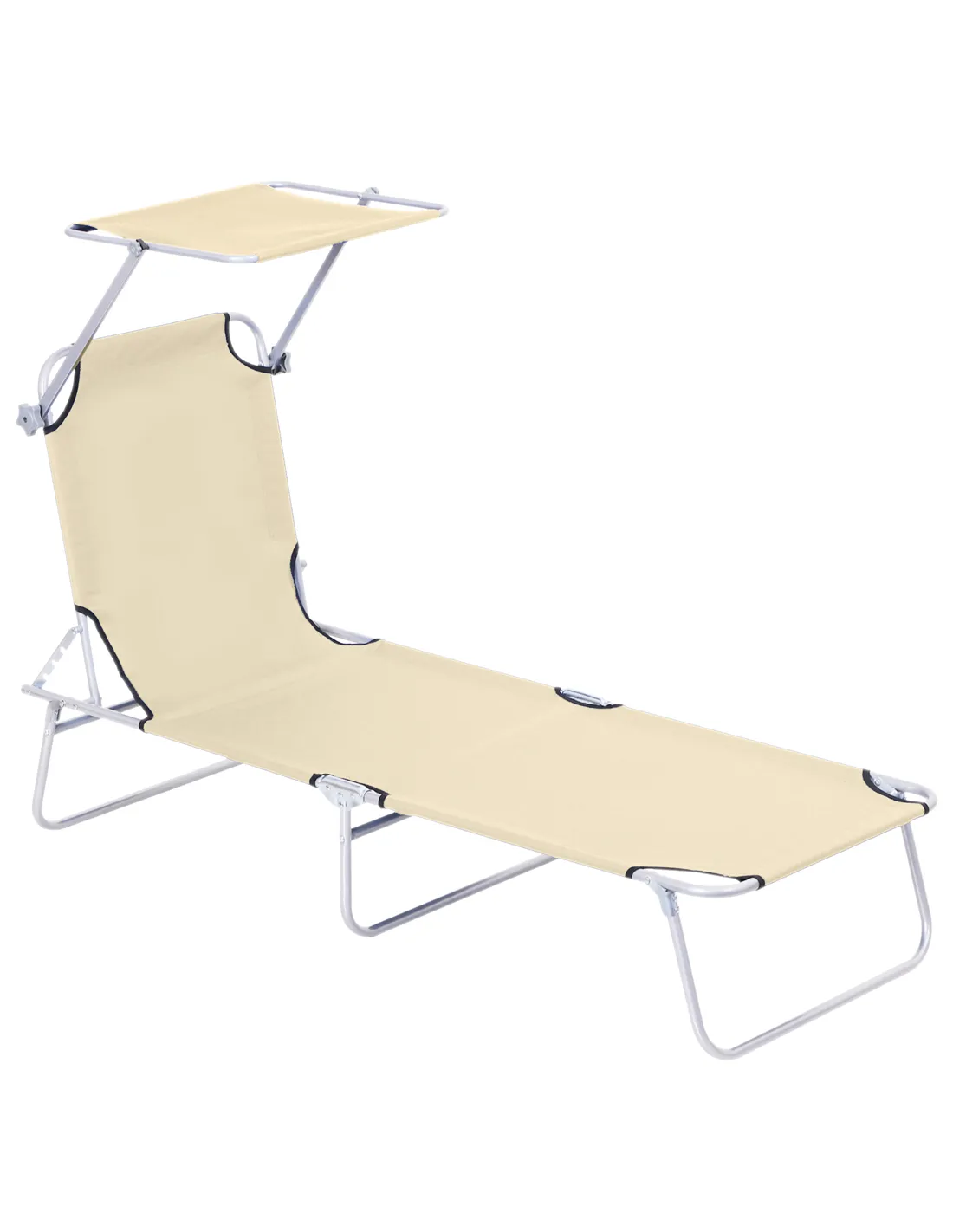 Outsunny Outdoor Foldable Sun Lounger, 4 Level Adjustable Backrest Reclining Sun Lounger Chair with Angle Adjust Sun Shade Awning for Beach, Garden, Patio, Beige