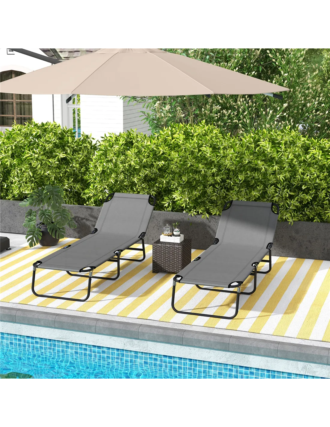 - Set of 2 sun loungers allow you and a friend to relax together