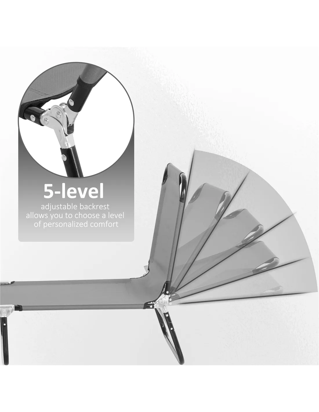Outsunny Garden Sun Lounger, with Five-Position Back - Grey