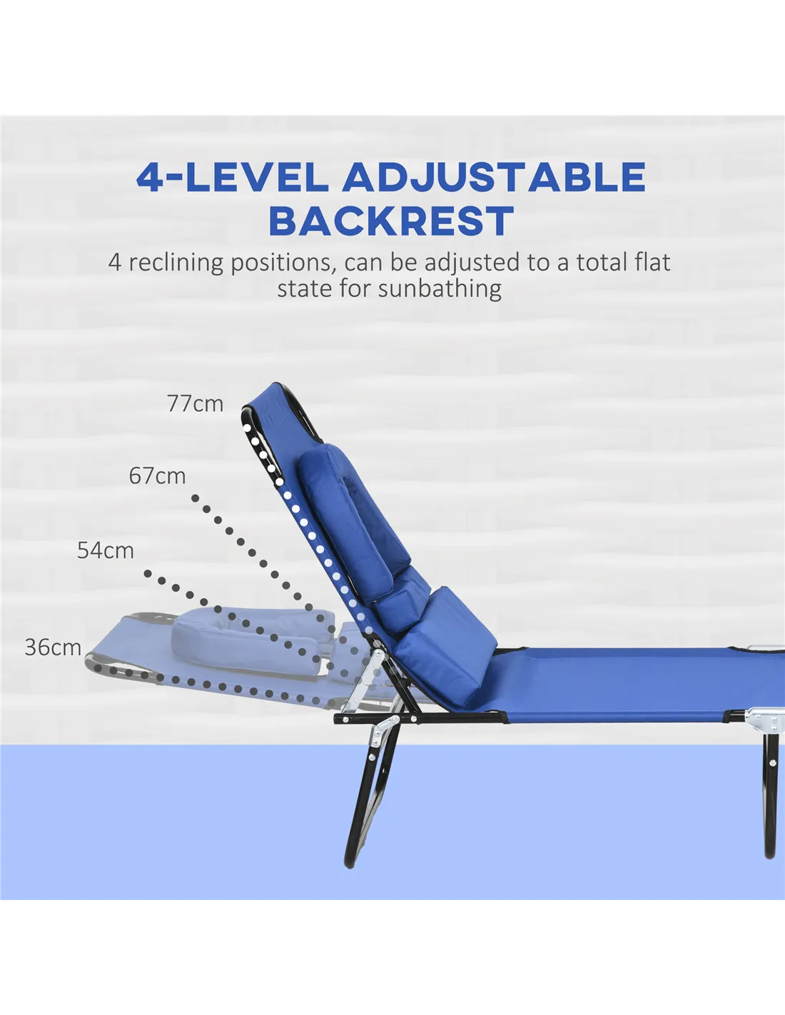 Outsunny Outdoor Folding Sun Lounger Set of 2 with Face Hole, 4 Level Adjustable Backrest Reclining Garden Lounger, Garden Recliner Sunbed with 600 D Oxford Cloth Seat and Pillow for Beach, Blue