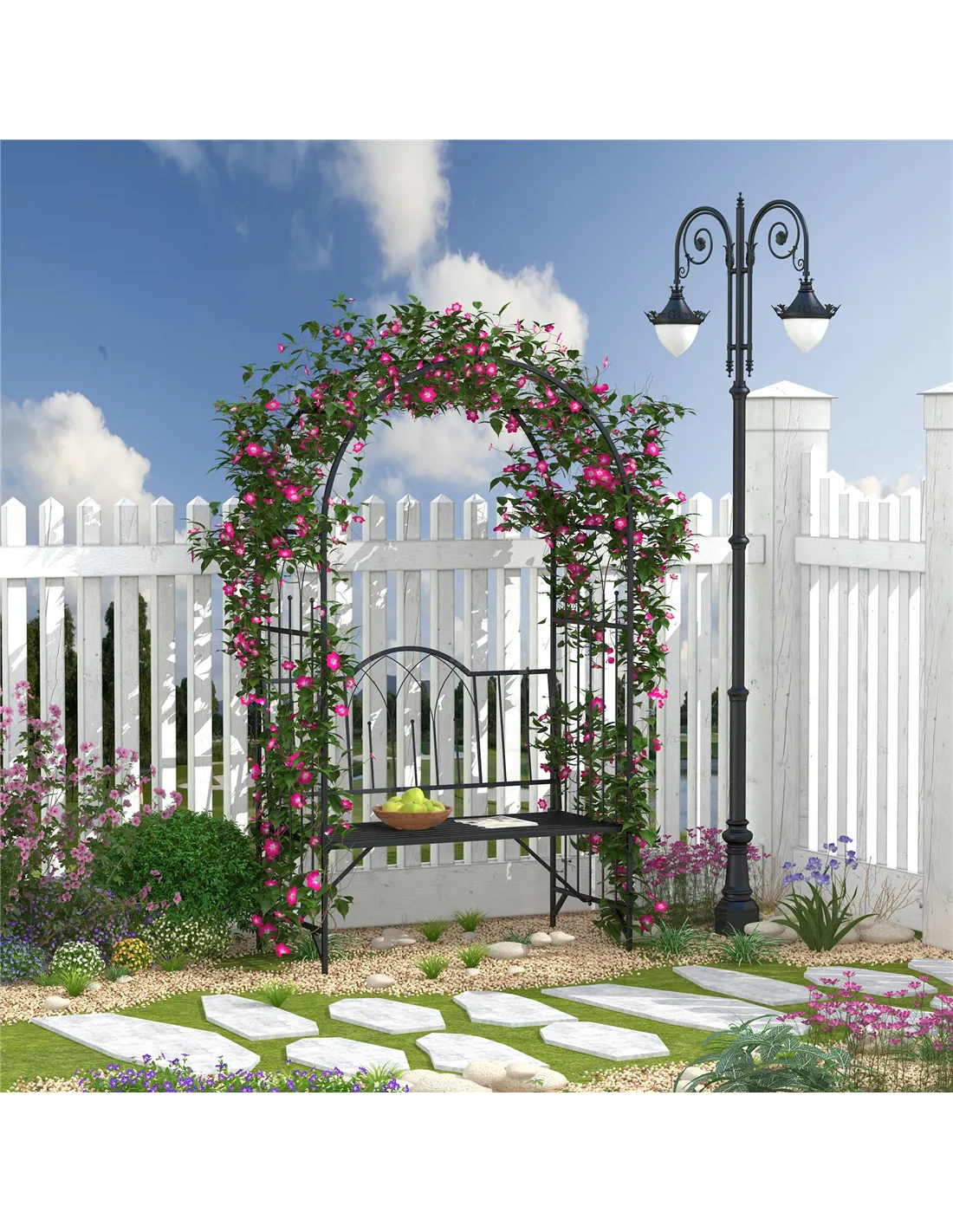 The bench supports up to 220kg, comfortably seating two adults. - Can climbing plants be trained on the arch?
